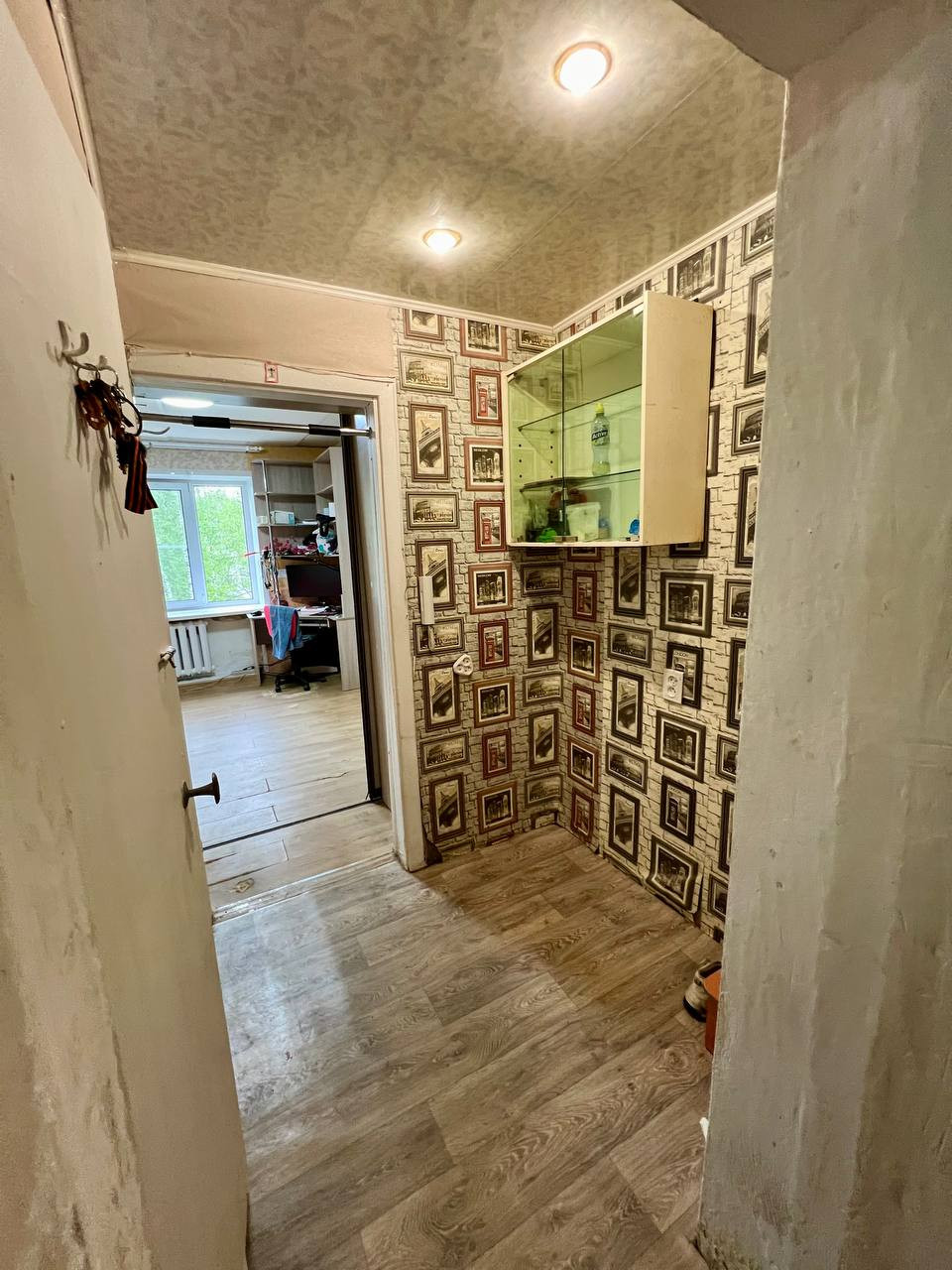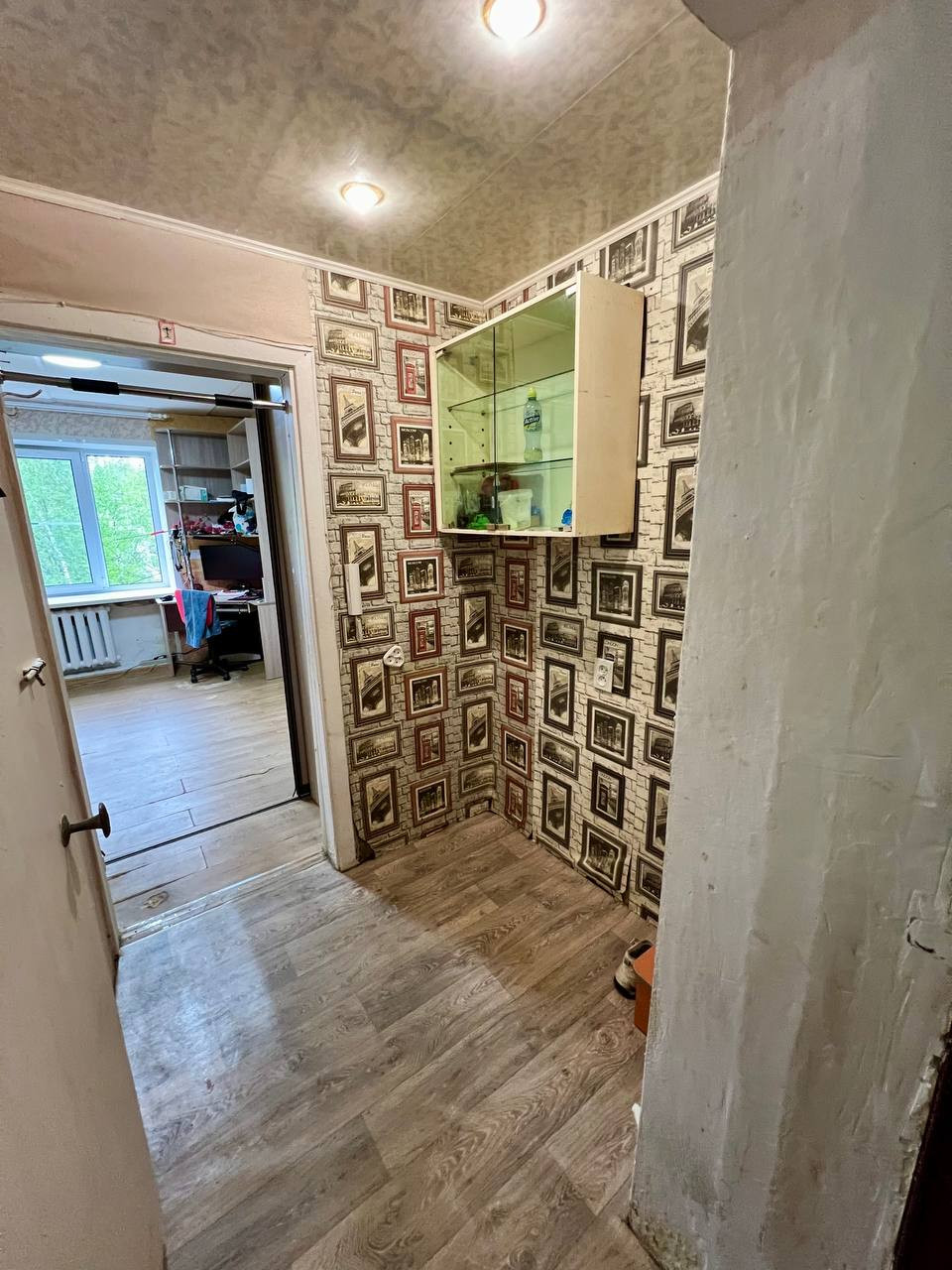 Не угловая. Пятый этаж. Сверху полноценный, нежилой тех этаж. Крыша не течет. Окно ПВХ, полностью поменяна проводка, ламинат, встроенная мебель, есть место с выводами для стиральной машинки. Можно установить кухню-прихожую.