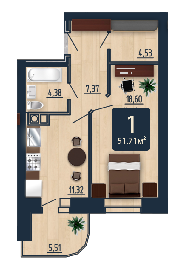Общая площадь 52.37 м2