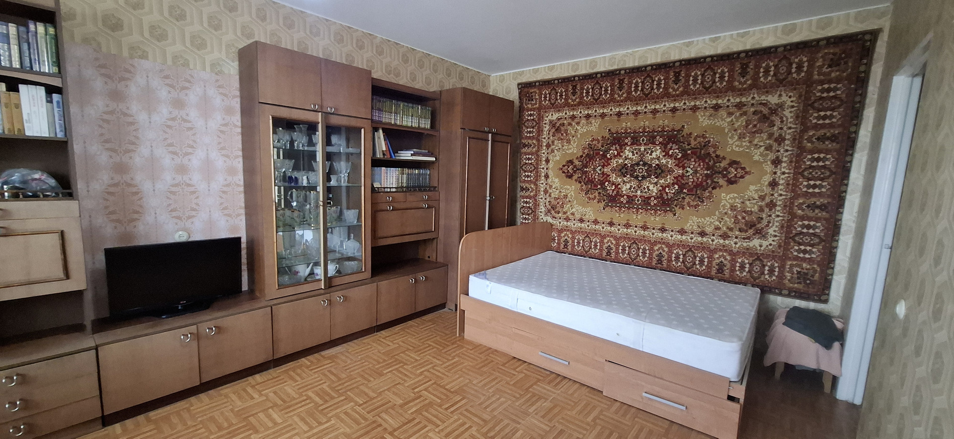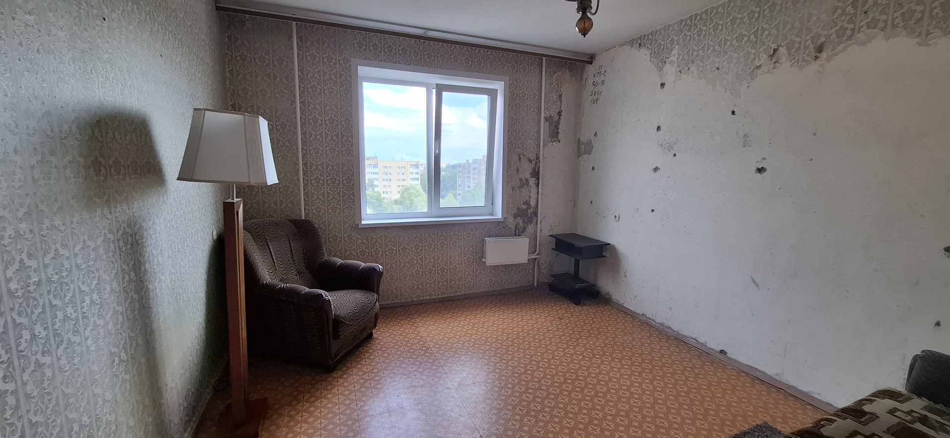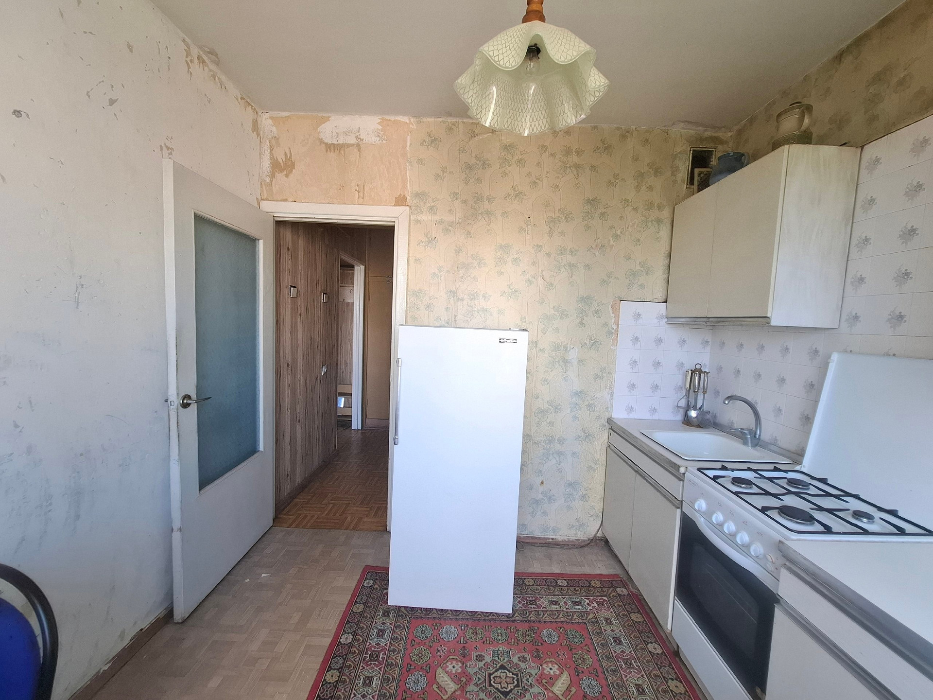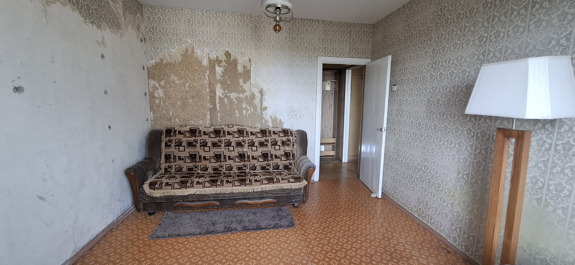 В квартире раздельные комнаты и санузел. Из большой комнаты выход на застеклённую лоджию (пластиковое остекление).