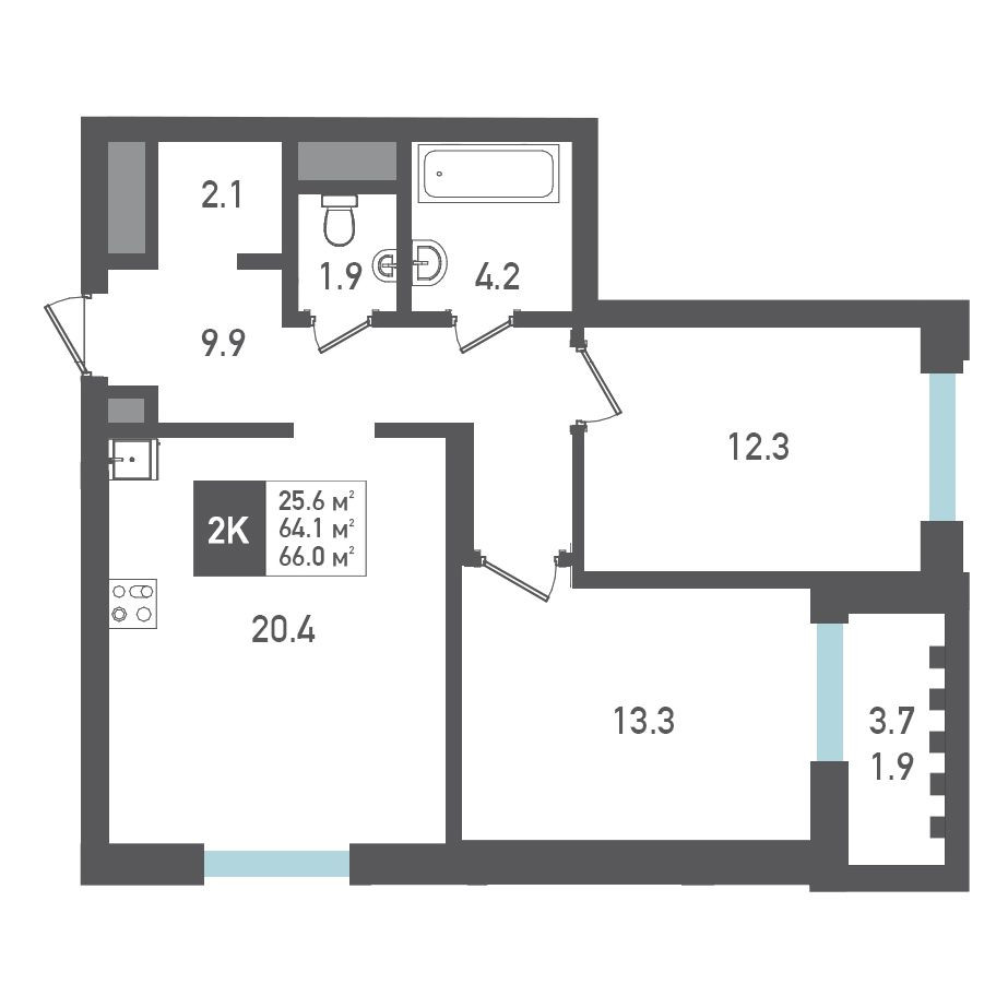 Общая площадь 66 м2