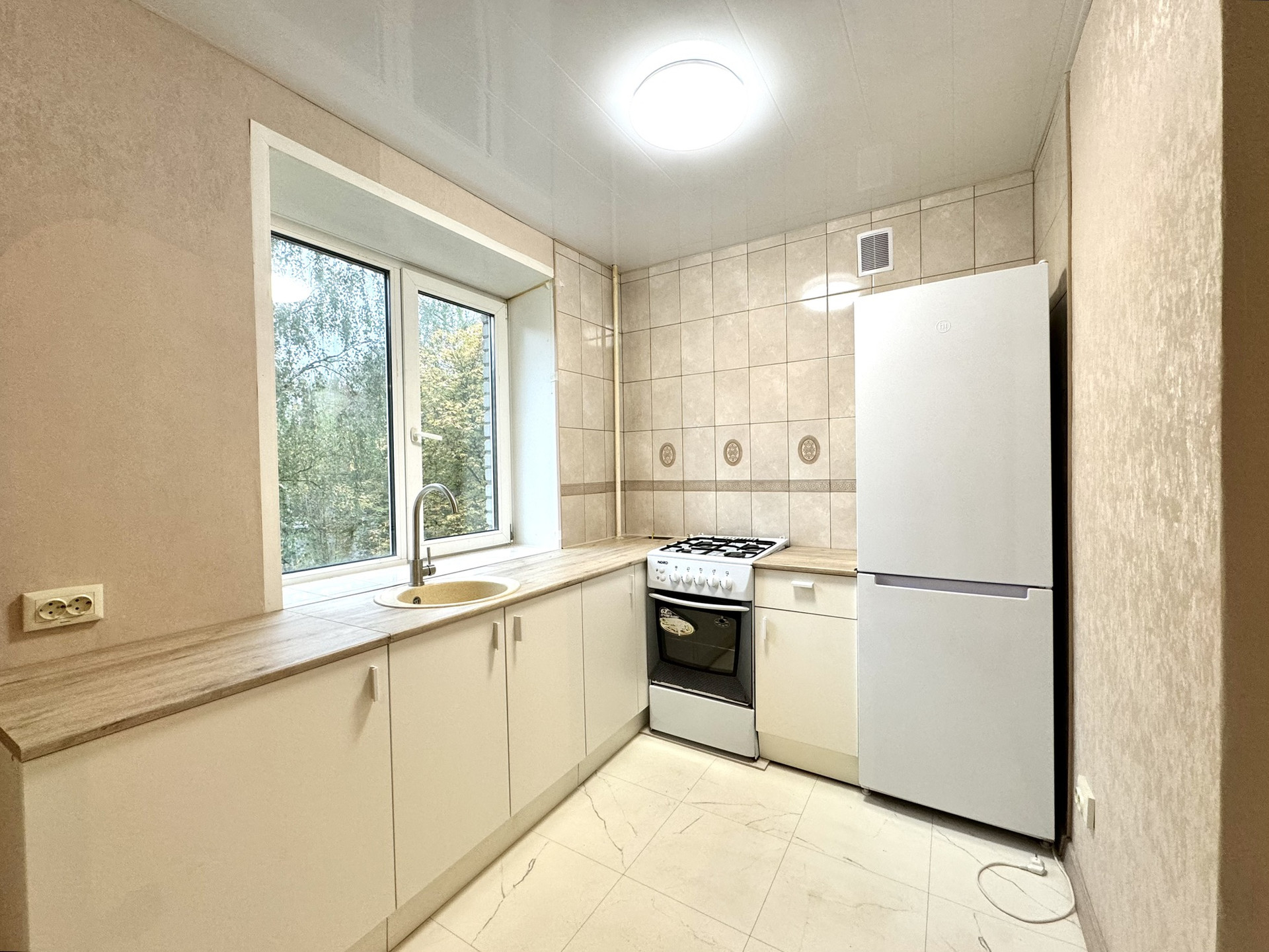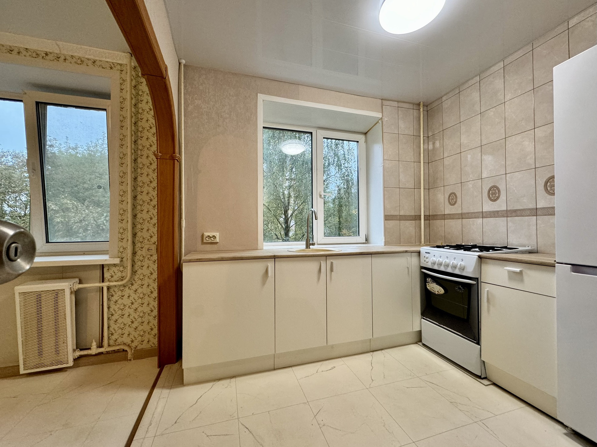 Квартира не угловая, со свежим ремонтом, можно заезжать и жить, не требует вложений. Натяжные потолки, новая душевая кабина, новый качественный унитаз, новый холодильник, стиральная машинка, кухонный гарнитур. Заменены все трубы в санузле, установлены счетчики. Окна ПВХ, выходят на две стороны дома, восток- запад.
