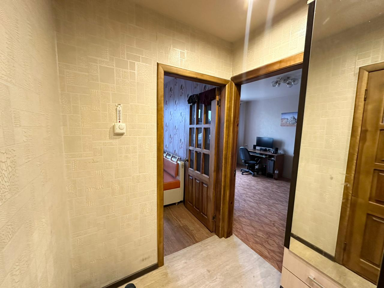 Квартира не угловая, балкон остеклен. Из окон панорамный вид. Дом находится на второй линии от дороги. Низкие коммунальные платежи. · Всегда чистый подъезд и придомовая территория, аккуратные и доброжелательные соседи. · Во дворе есть место для стоянки автомобиля. · Современная детская и спортивная площадки.