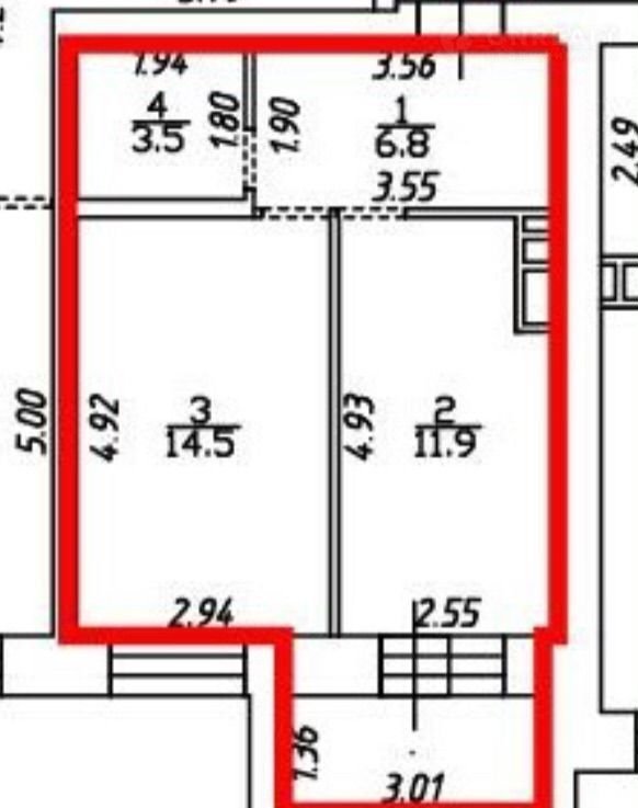 Площадь кухни 11.9 м2