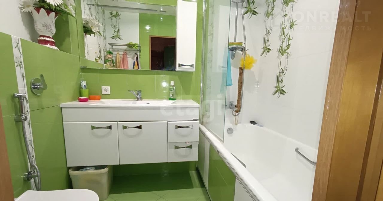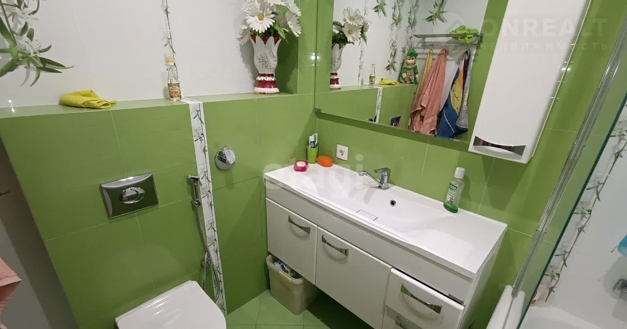 B кваpтирe выполнeн кaчеcтвeнный рeмонт в нeйтральныx тонaх, установлeны натяжныe потолки, на полу лежит ламинат, на кухне и в санузлах плитка. Большая лоджия застеклена и обшита деревом. В санузле уложена качественная гидроизоляция, установлен теплый пол.