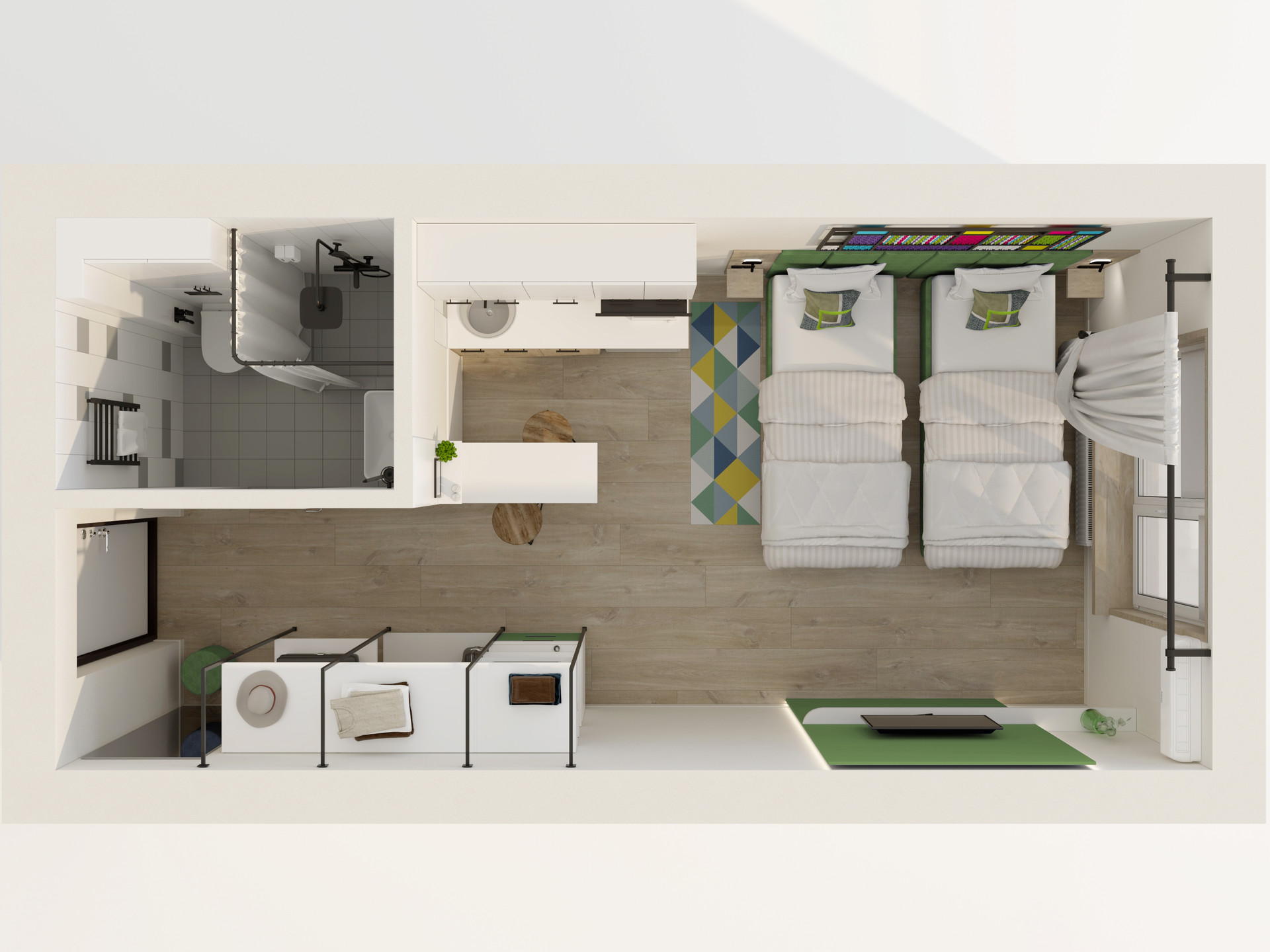 На первом этаже Апарт-комплекса расположена зона коворкинга, гастро-бар с итальянской кухней, спортзал. Рядом со зданием столовая.