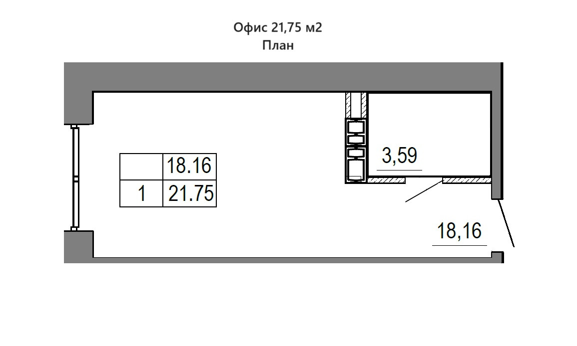 Общая площадь 21.75 м2