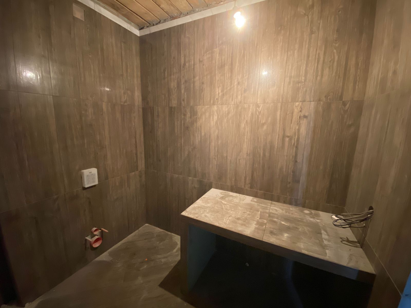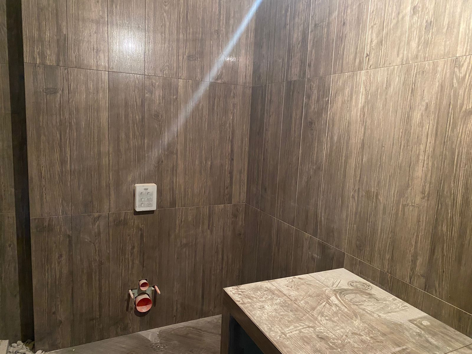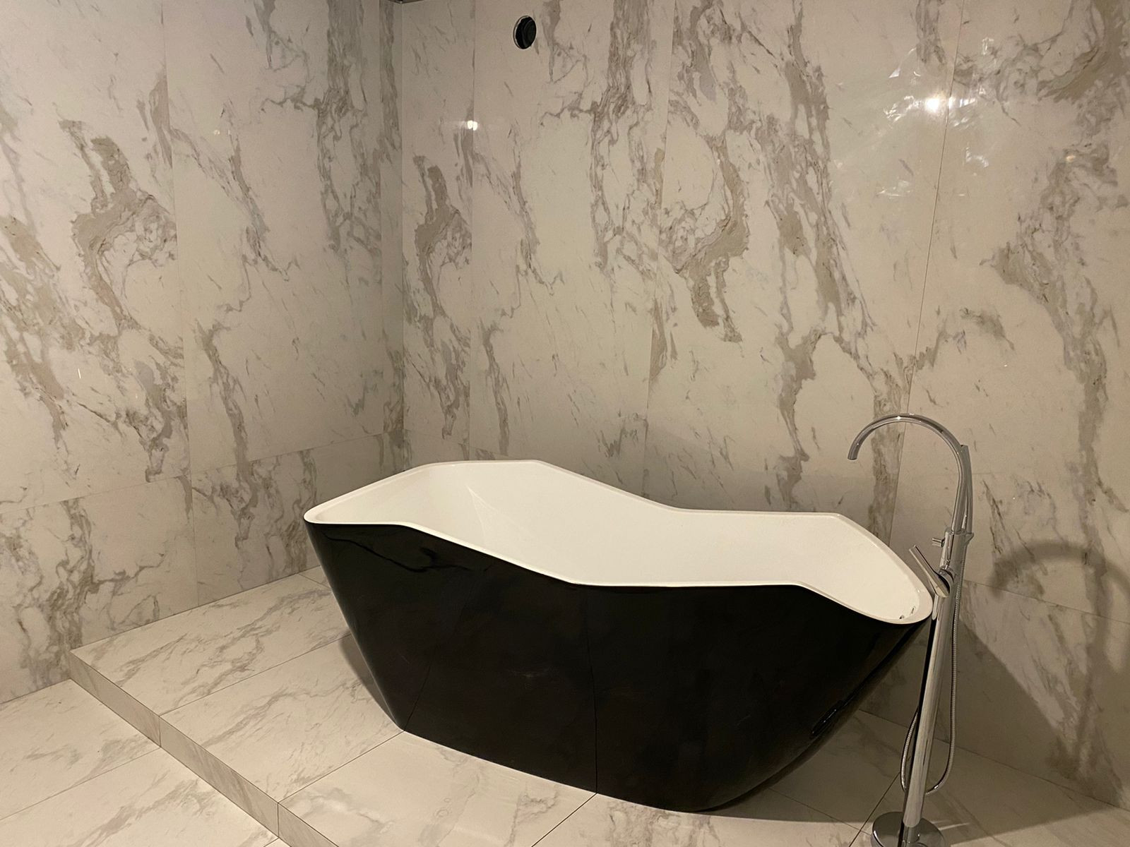 - На цокольном этаже расположена большая ванная комната совмещенная с санузлом, выполненная из итальянского крупноформатного керамогранита. Вся сантехника немецкой марки Hansgrohe, в том числе и санузел.