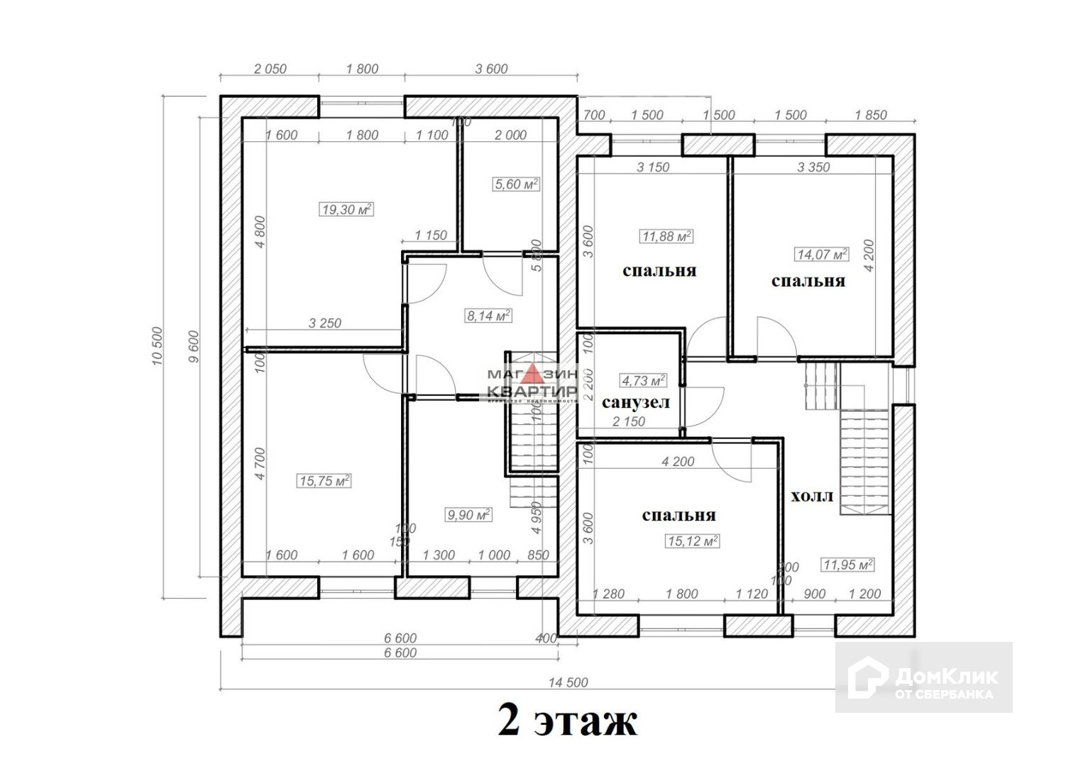 Второй этаж: три спальни (18 кв.м., 11кв.м., 12 кв.м.), 2 комнаты с выходом на лоджию, санузел.