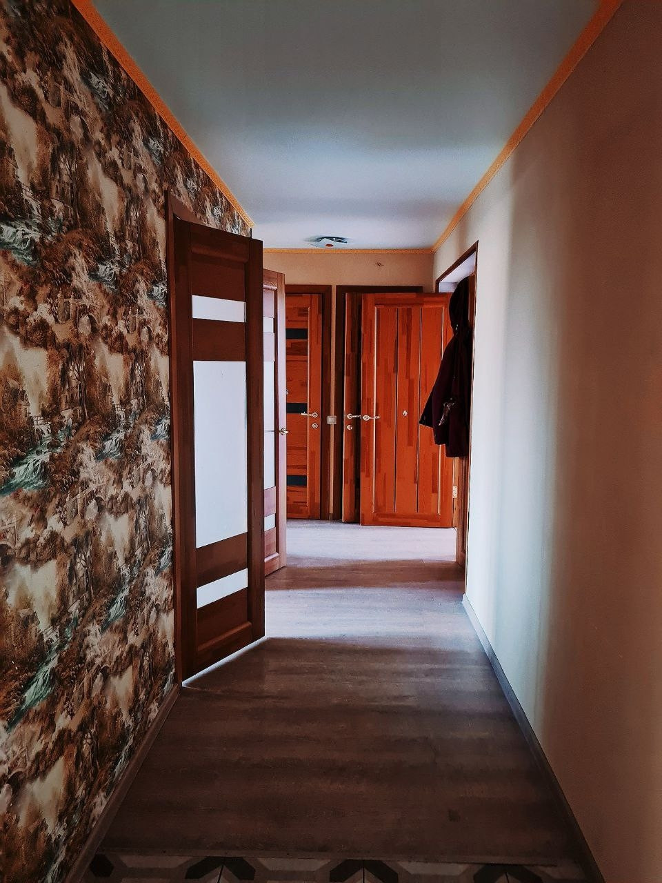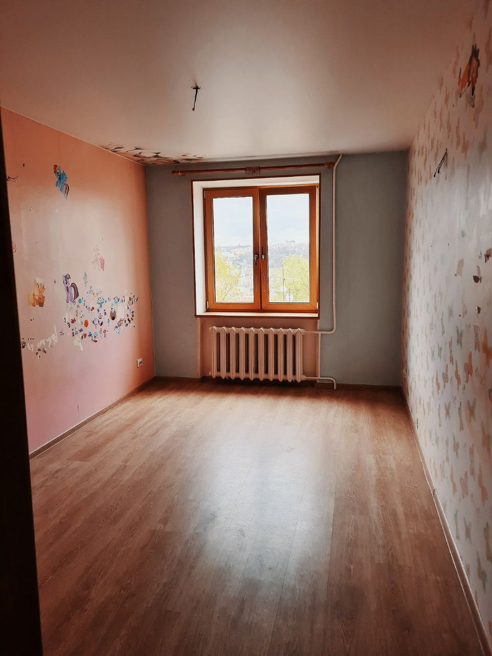 Натяжные потолки. Ламинат по всей квартире. Пластиковые окна с ламинированием. Великолепный вид из окна!