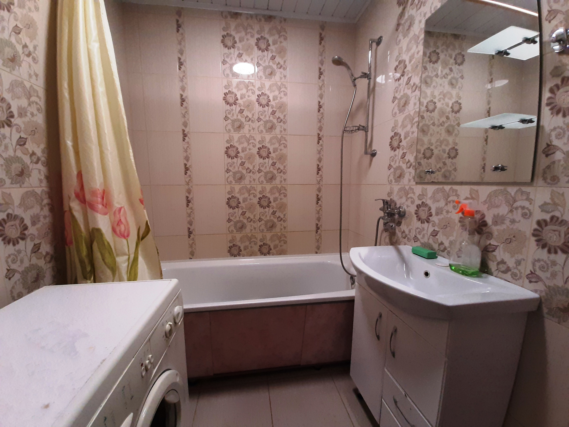 Ванная комната: раковина с тумбой, стиральная машинка.