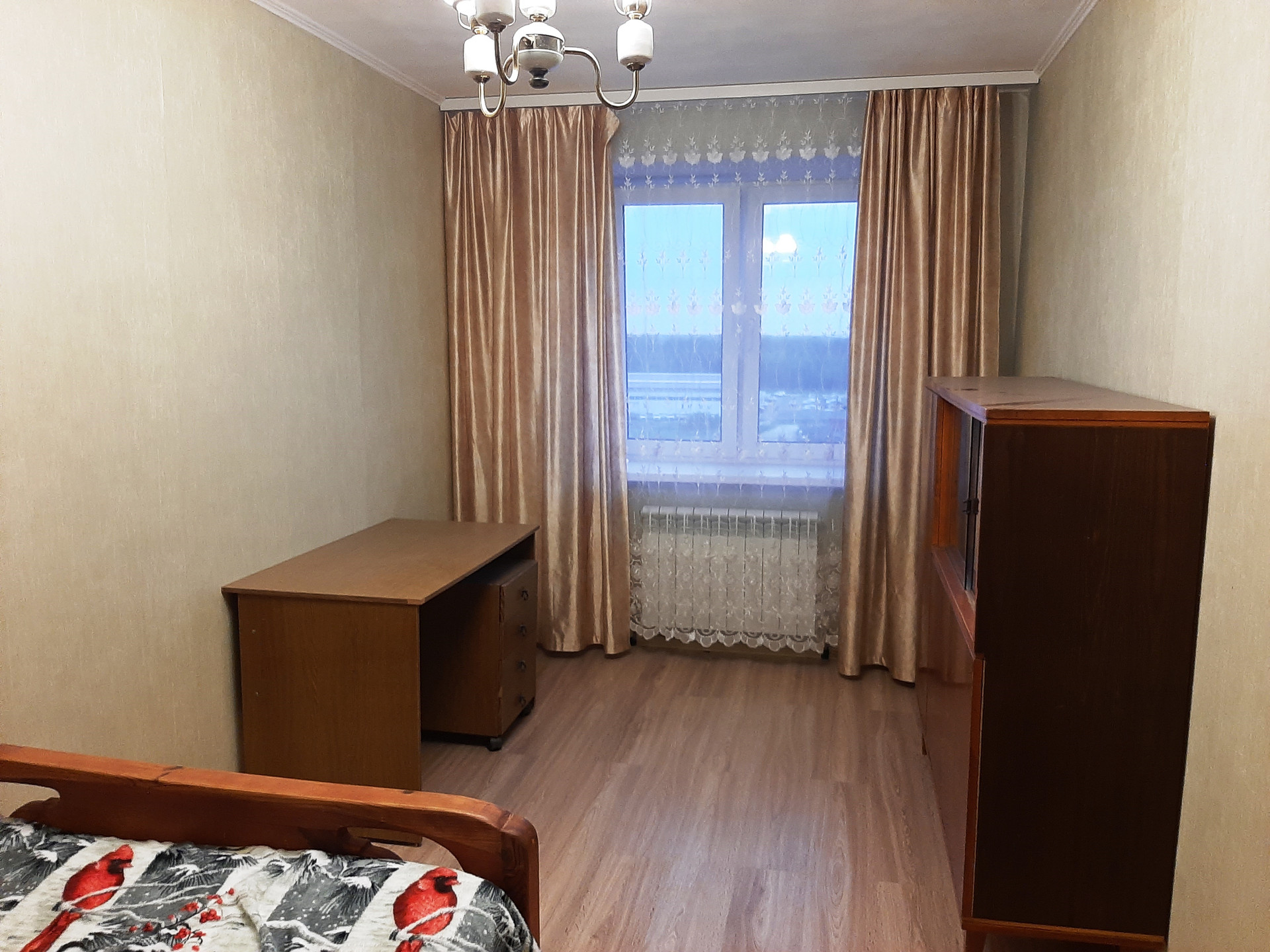 Комната 14 кв.м.: кровать, письменный стол, шкаф.