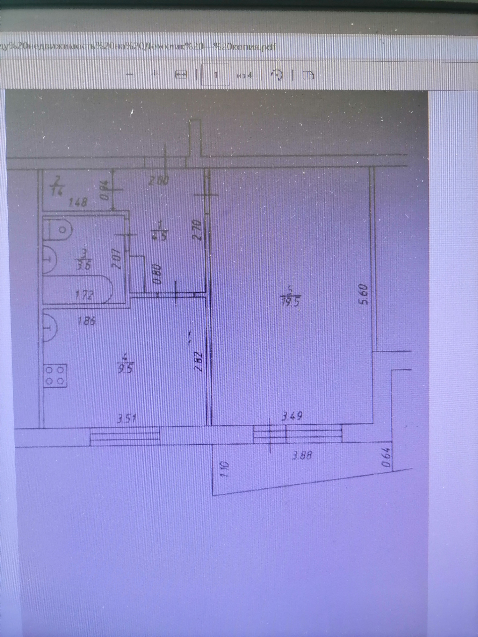Жилая площадь 19.5 м2
