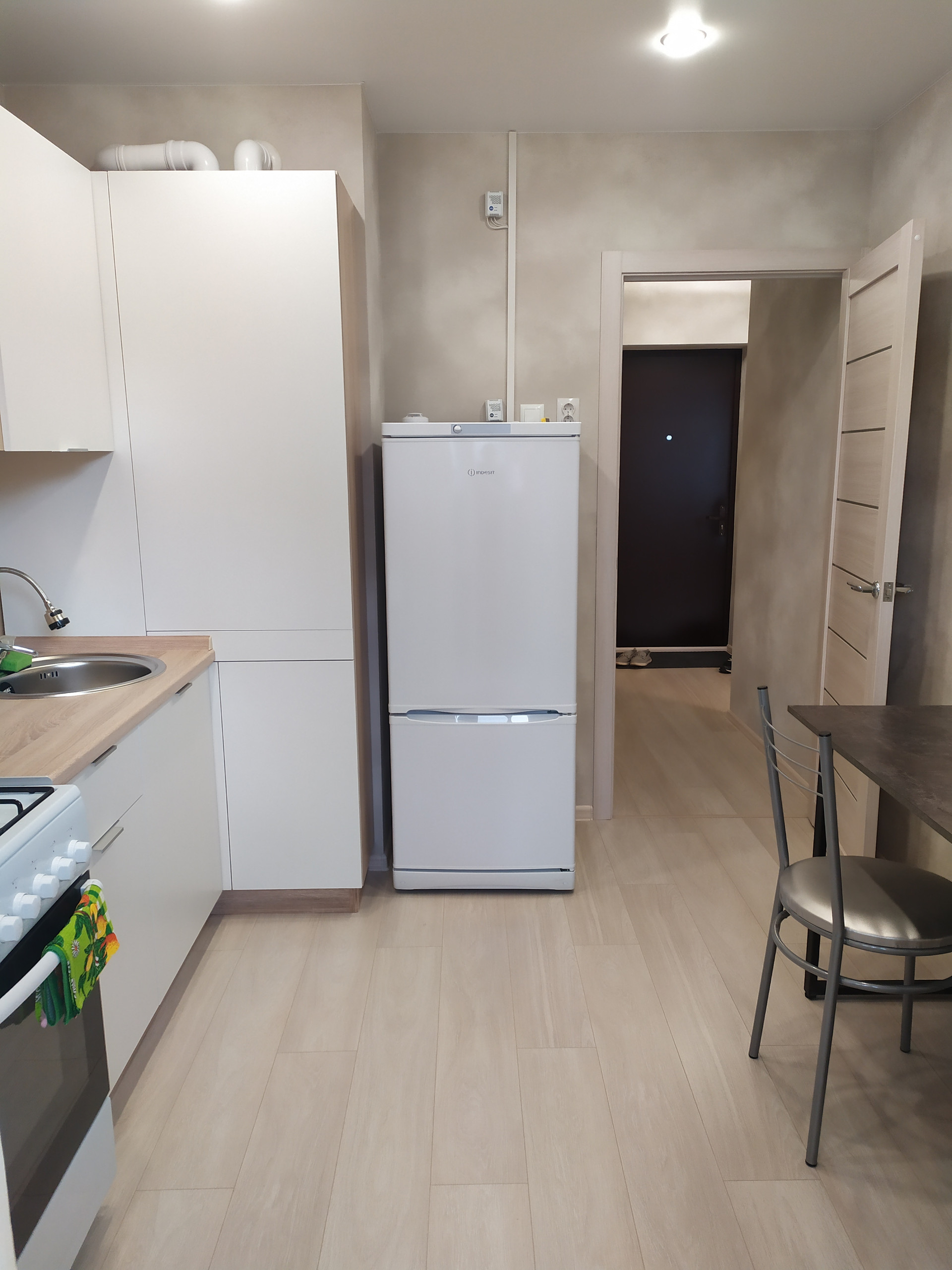 Новый ремонт. Есть все для комфортного проживания: спальное место, шкафы для хранения, встроенная кухня с бытовой техникой, оборудованный с/у со стиральной машинкой автомат.