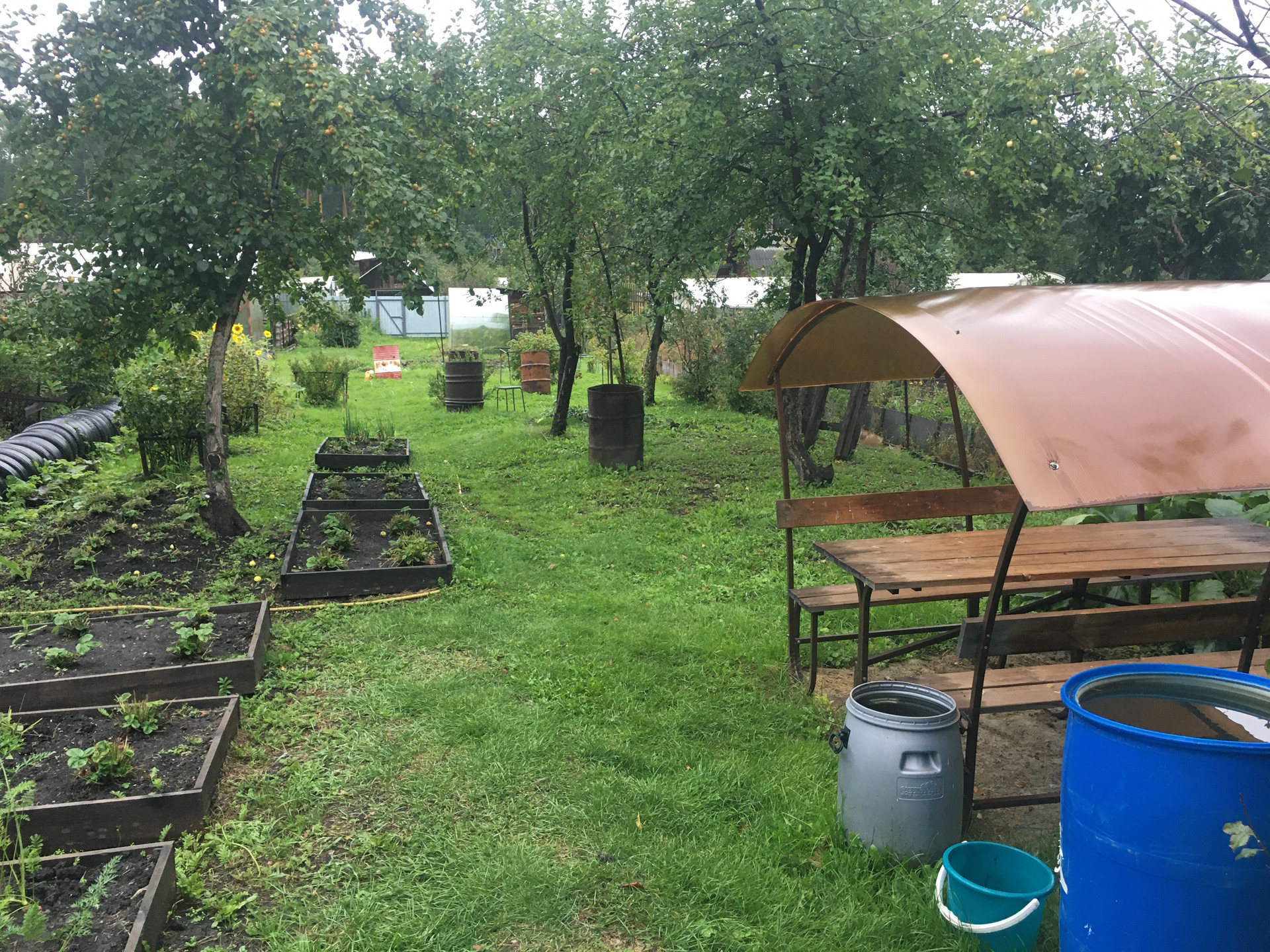 Сад в снт 1 раскуриха дом из бруса электричество все посадки туалет теплица и т.д
