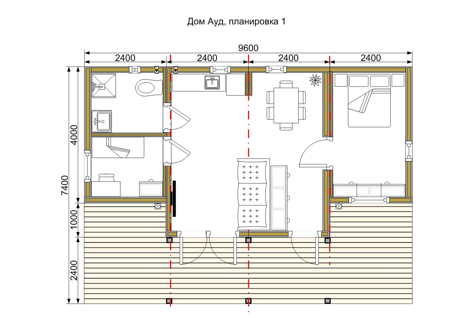 Габариты: 9,6х5,0 м, с террасой 9,6х7,4 м