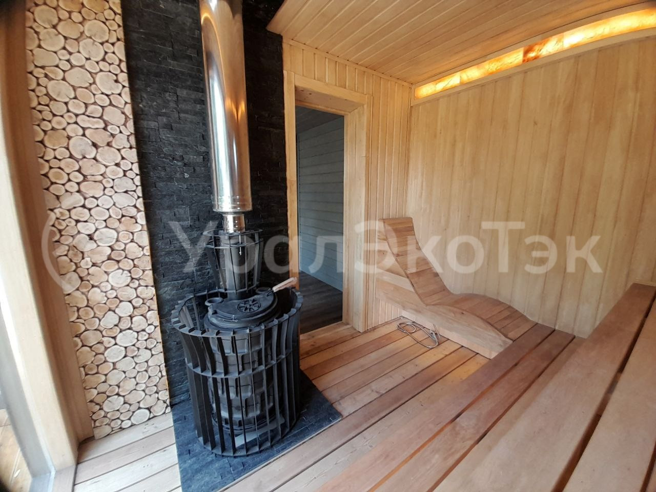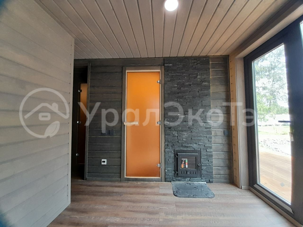 ✅ В пaрнoй установлена банная дровяная печь Diаnа Skаlа Роrtа со стеклянной дверцей, бак на трубе 50 л.