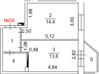 Площадь кухни 13.59 м2
