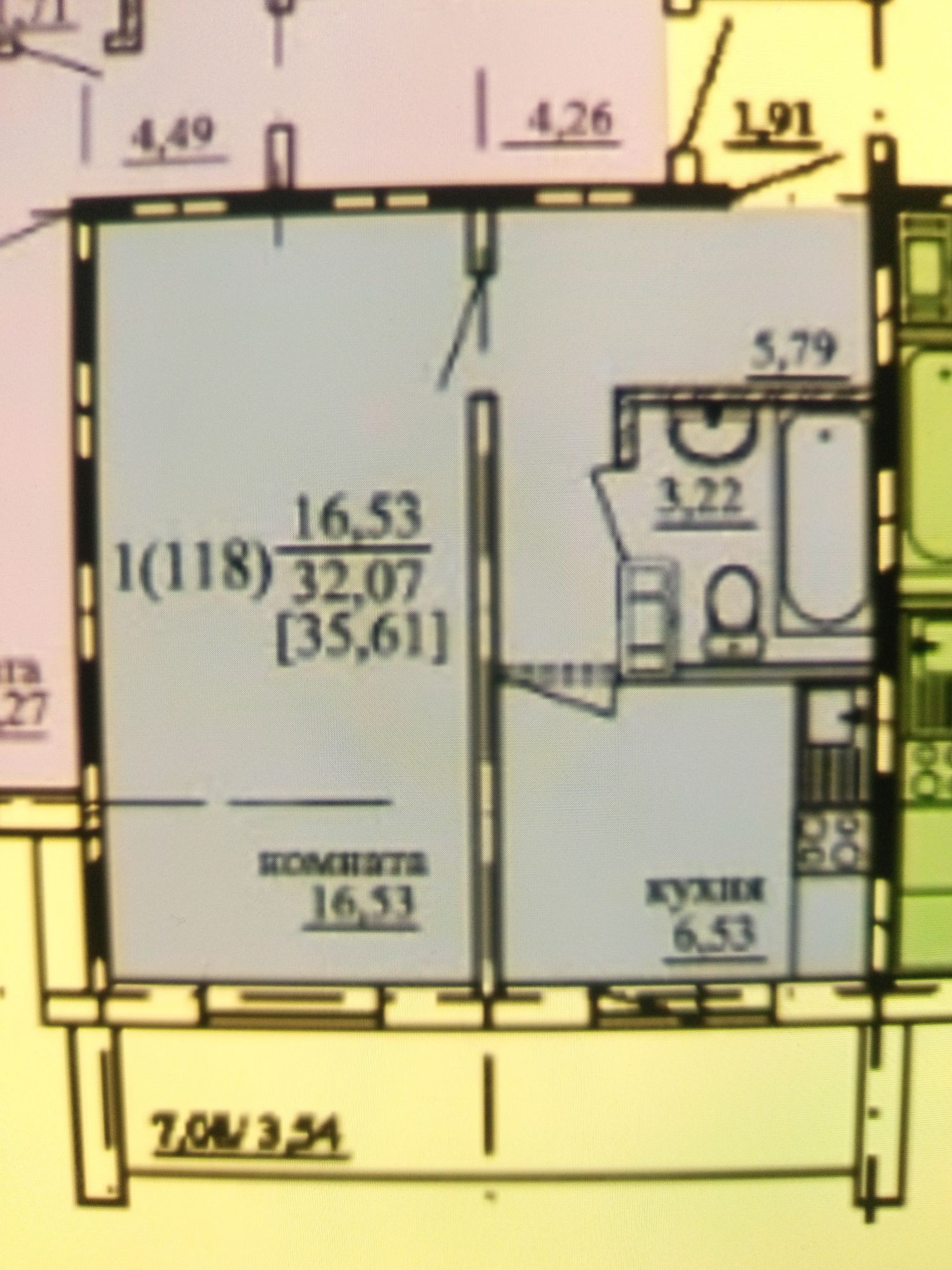 Общая площадь 36 м2