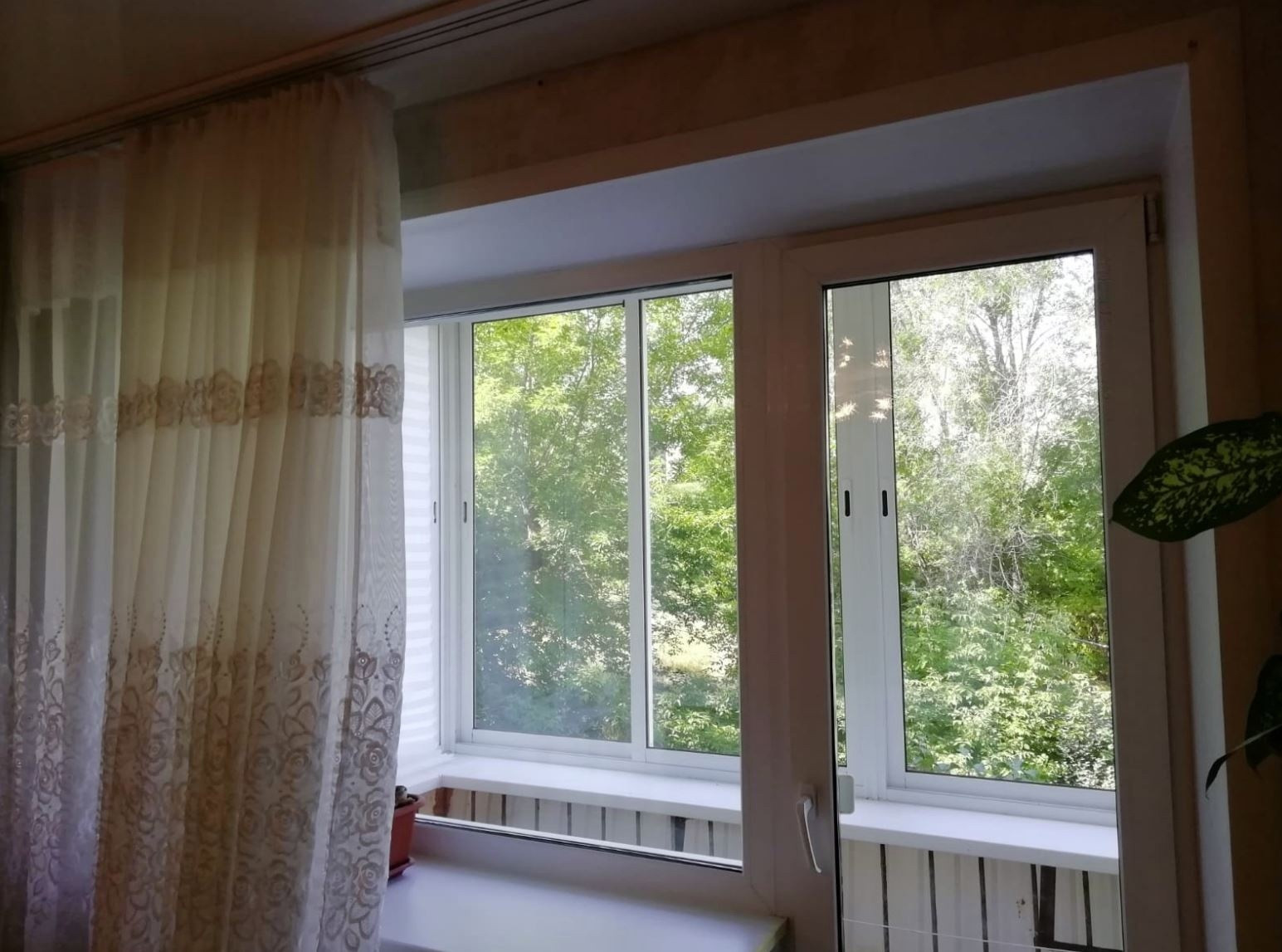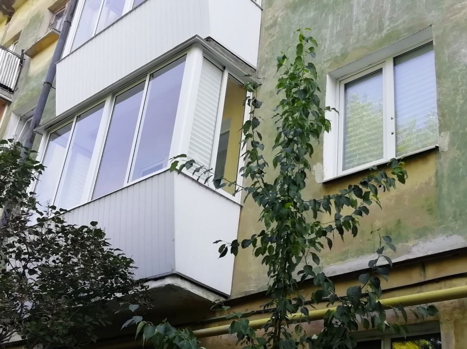 Окна пластиковые, выходят во двор. Застекленный балкон, железная дверь.
