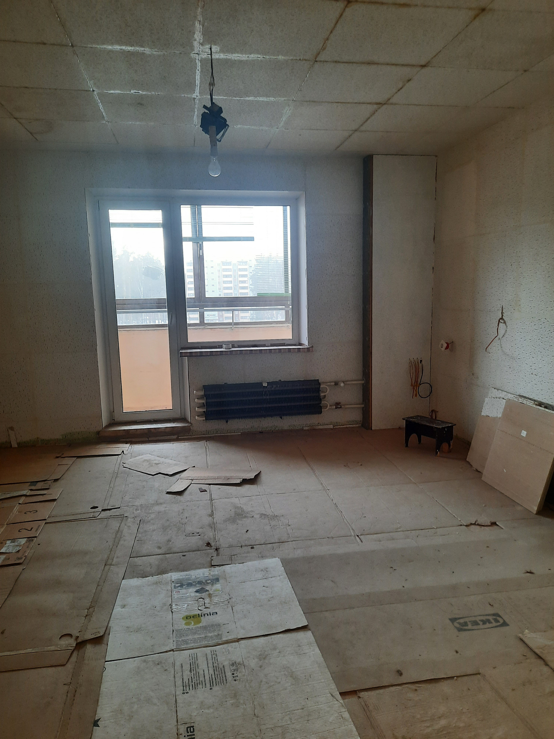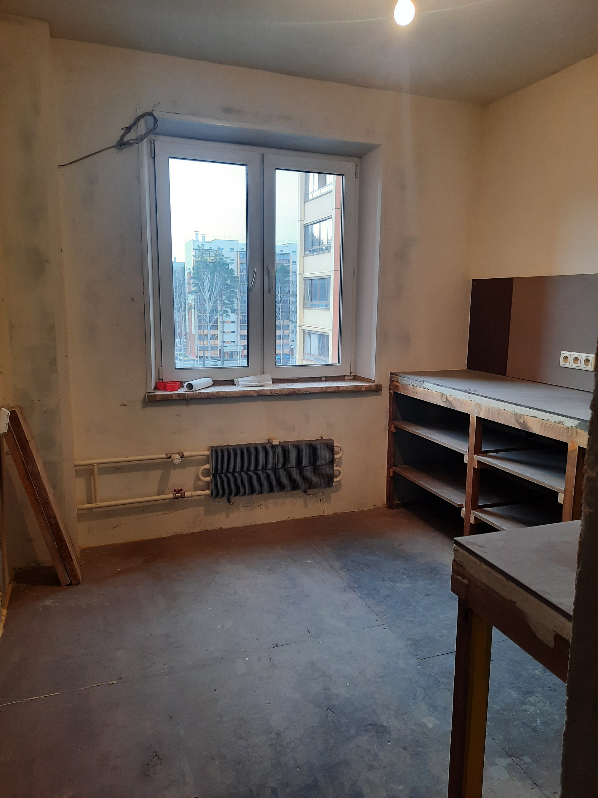 Продам квартиру. Произведены следующие строительные работы: пол - плитка (керамогранит), натуральное дерево (лиственница). Стены - сделана шумоизоляция, разведена проводка по всей квартире. В туалете - плитка, в ванной - отделена и отделана плиткой душевая кабина. На кухне выполнен каркас кухонного гарнитура.
