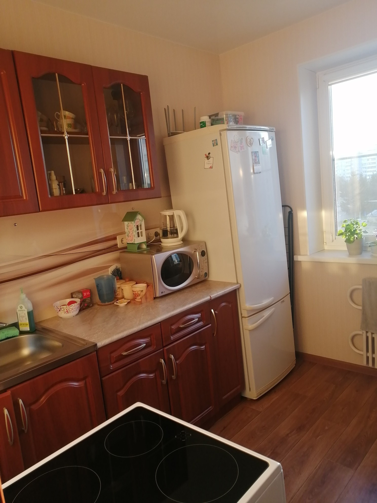 Продам однокомнатную квартиру. 4 этаж. Ремонт, пластиковые окна, счётчики на воду, по всей квартире натяжные потолки. Балкон застеклен и обшит вагонкой. Окна выходят во двор на пожарную часть. Квартира тёплая. Соседи спокойные. В квартире остаётся кухонный гарнитур и прихожая по договорённости.