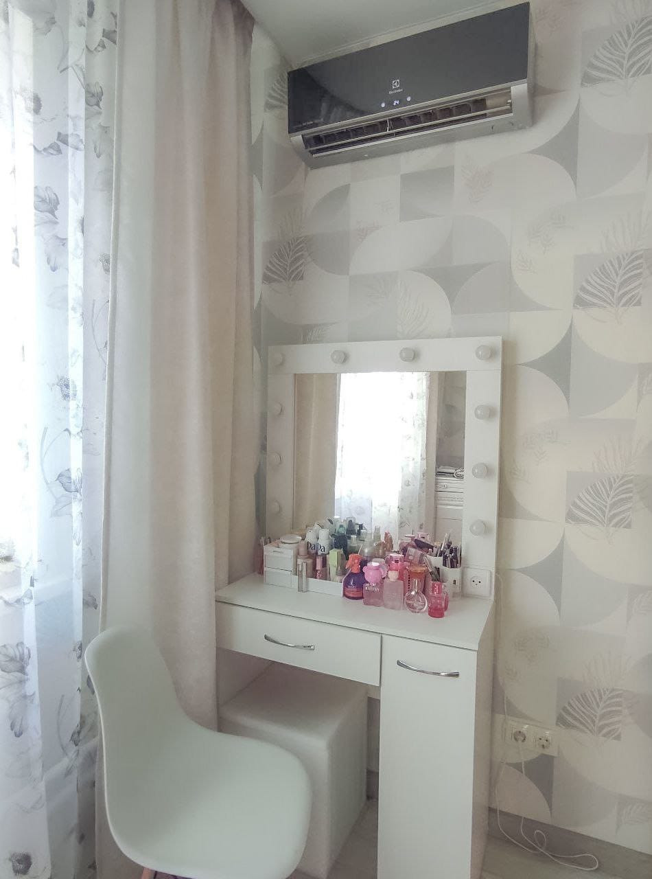 Идеальное состояние, свежий, качественный ремонт, вложения не требуются, натяжные потолки во всей квартире, на полу ламинат, отделка ванной и туалета керамическая плитка, заменена вся сантехника, электрика, окна, межкомнатные и входная двери, в кухне на полу уложена плитка, остаётся кухонный гарнитур, со встроенной посудомоечной машиной, индукционная плита в гарнитуре. Имеется оборудованная гардеробная с полками и шкафом, кондиционер. Балкон застеклен, панорамные окна на балконе.