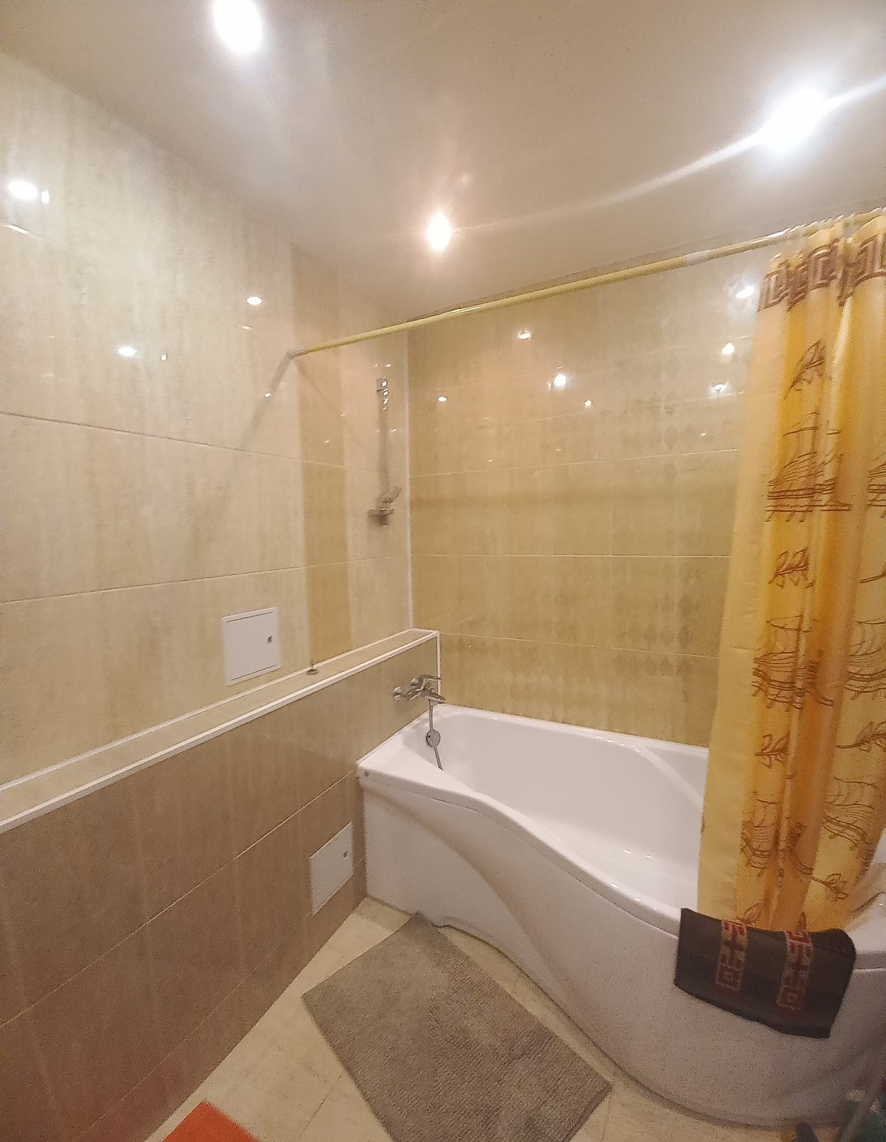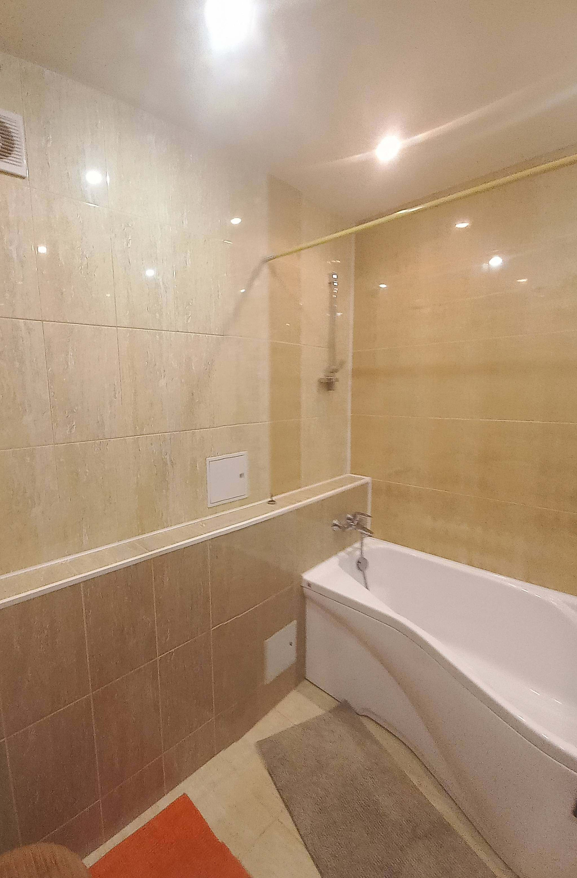 В доме сделан ремонт, во всех помещениях натяжные потолки, ламинат, санузлы отделаны кафелем, новая сентехника и теплый пол. Из мебели остается кухонный гарнитур, на втором этаже двуспальная кравать  и  шкаф.