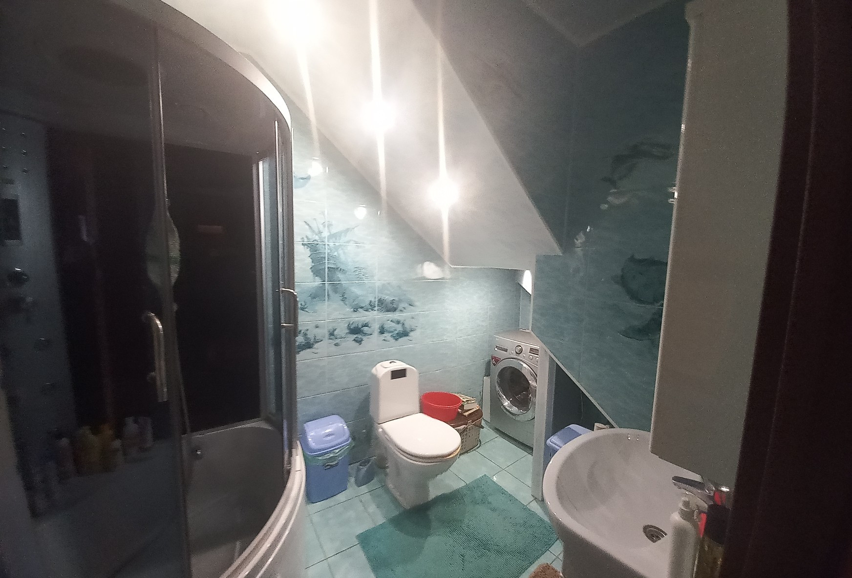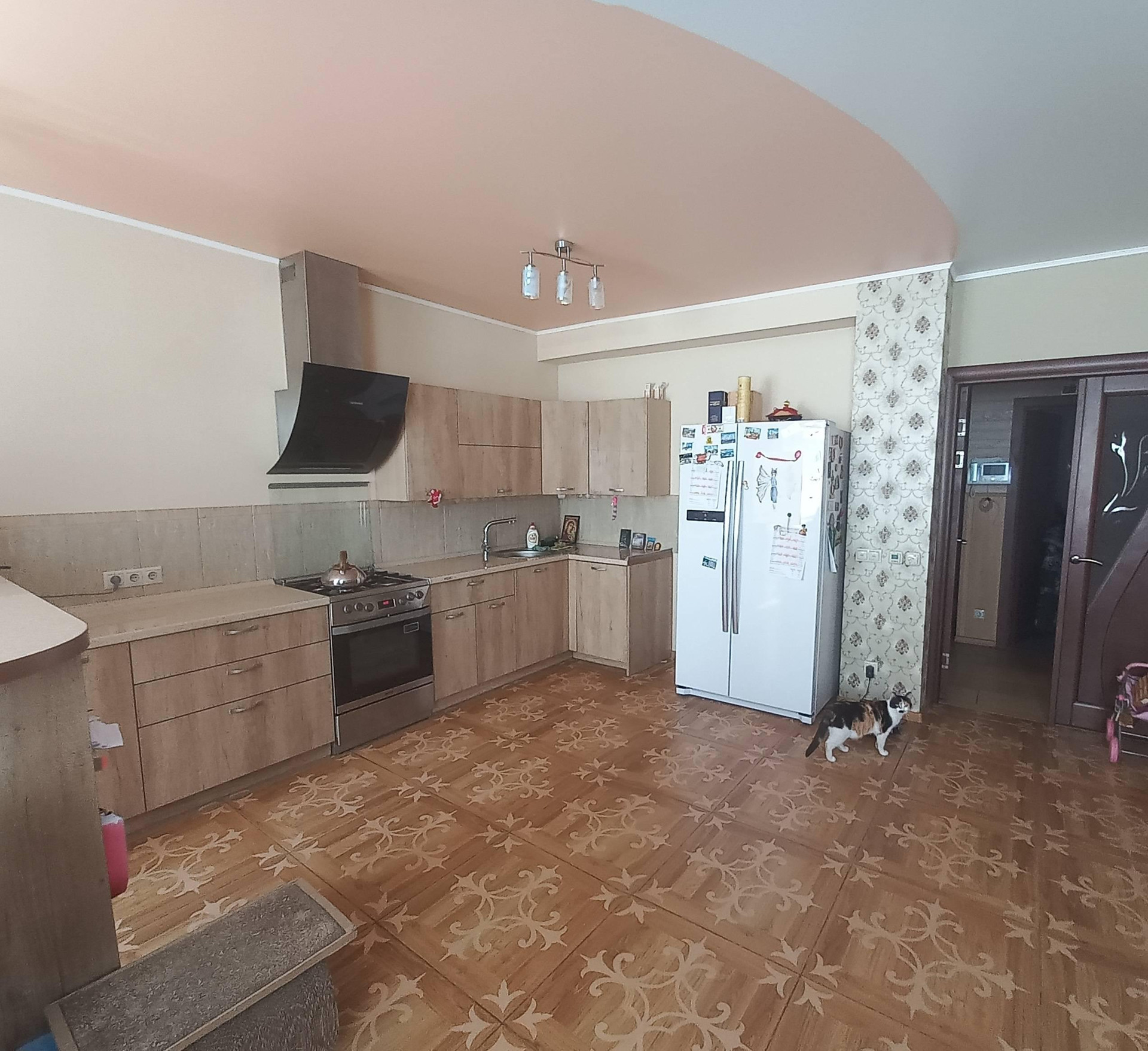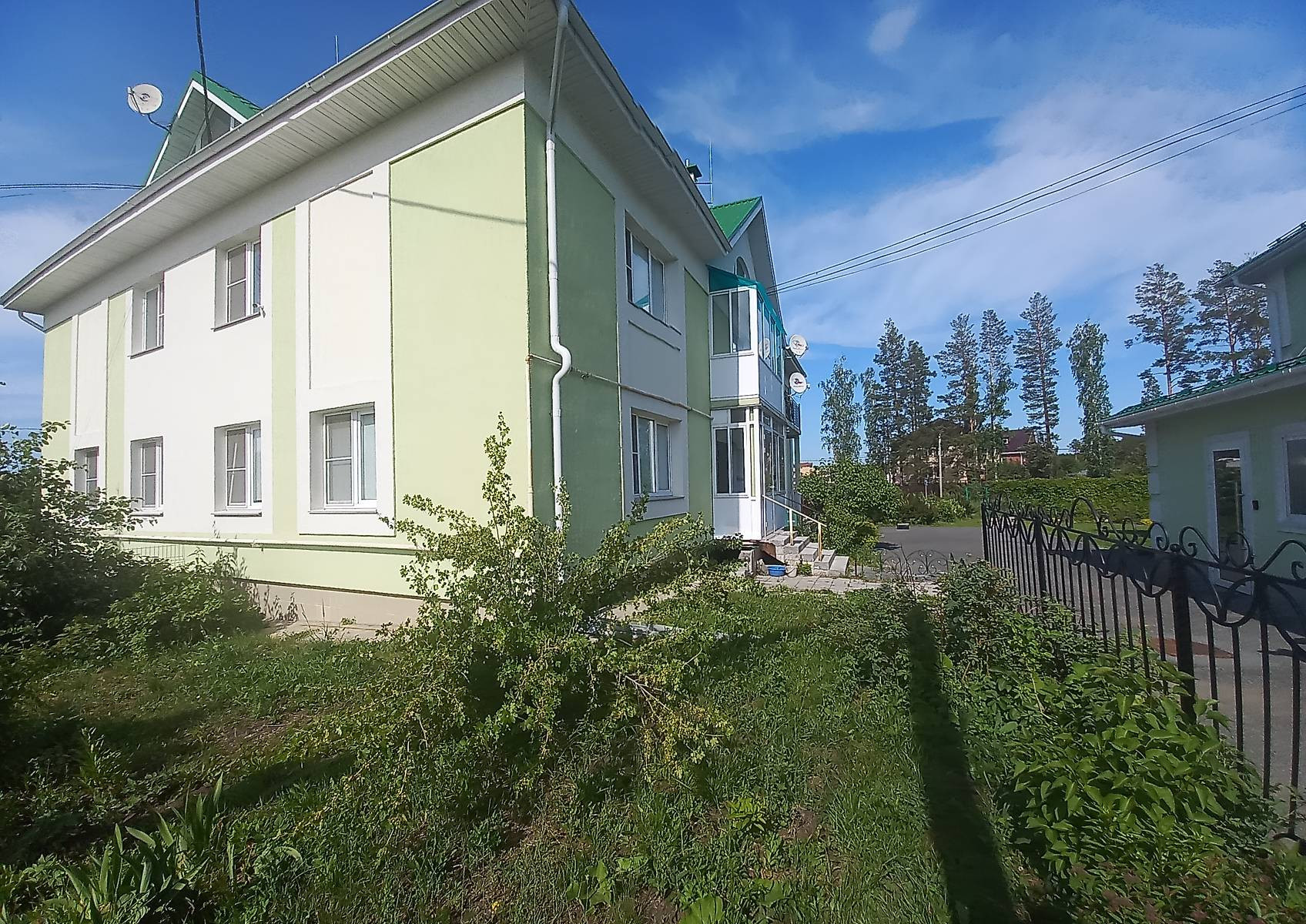 Общая площадь 115.2 кв.м., дополнительно,  имеется подвал и монсарда, крытое парковочное место. Есть система видеонаблюдения возле дома. На первом этаже расположен  зал совмещенный с кухней, санузел,  техническое помешение и прихожая.