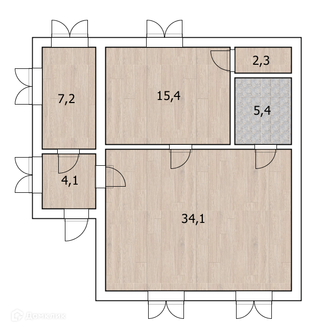 Жилая площадь 34.1 м2