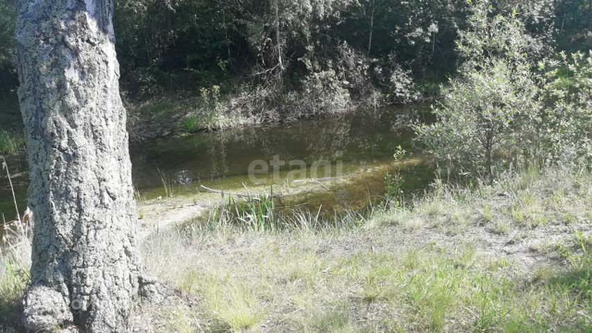 На участке есть не законченный фундамент. Участок не разрабатывали. По берегу растут молодые берёзки.