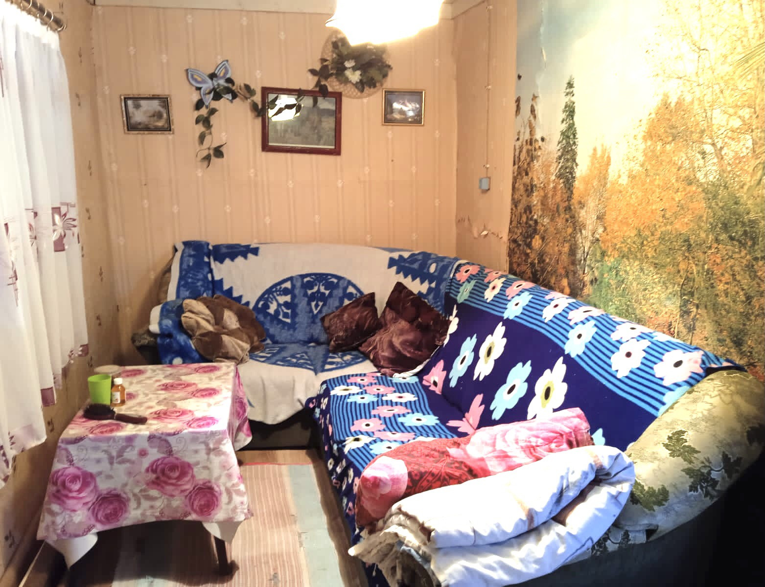 Кровля дома двускатная, профнастил. Мебель остаётся. Холодильник (Мир) и стиральная машинка "Малютка" рабочие.