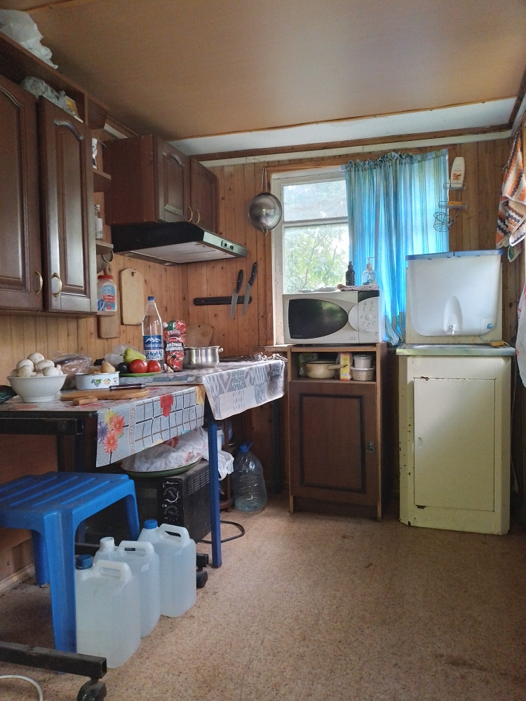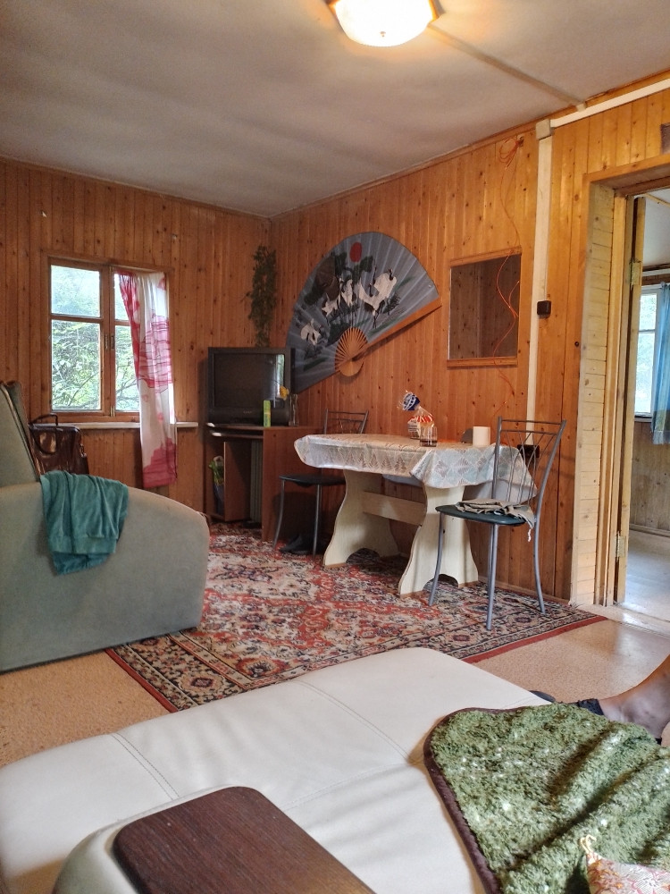 Старое СНТ. Участок с домом. Дом из бруса, обшитый вагонкой. Прекрасно работающая Печь-Камин. На первом этаже большая гостинная 25 кв.м., кухня 10 кв.м. и кладовка 10 кв.м.. На втором этаже спальня 10кв.м.. Участок прямоугольный, с плодовыми деревьями. Есть отдельно стоящий кирпичный сарай. В собственности с 2007 года.