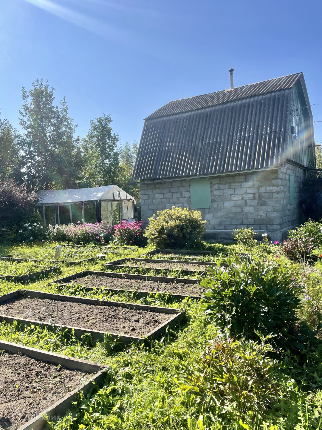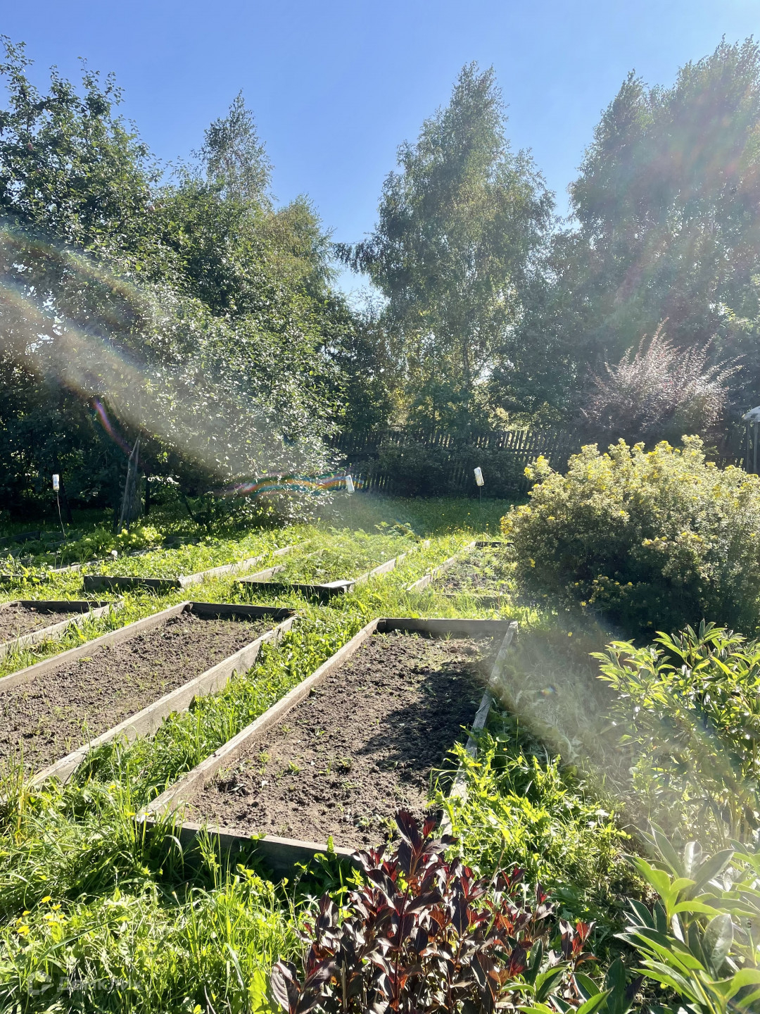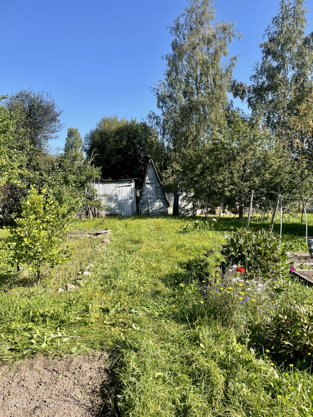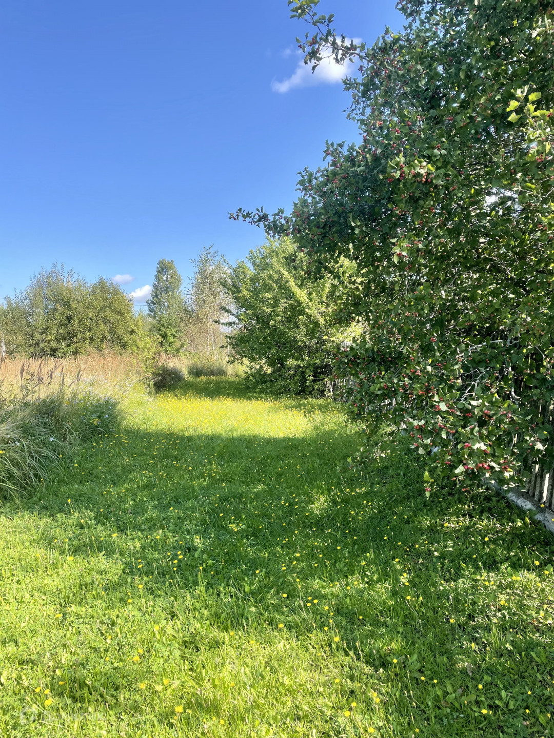 участок ухоженный, правильной, прямоугольной формы с плодовыми деревьями и кустарниками