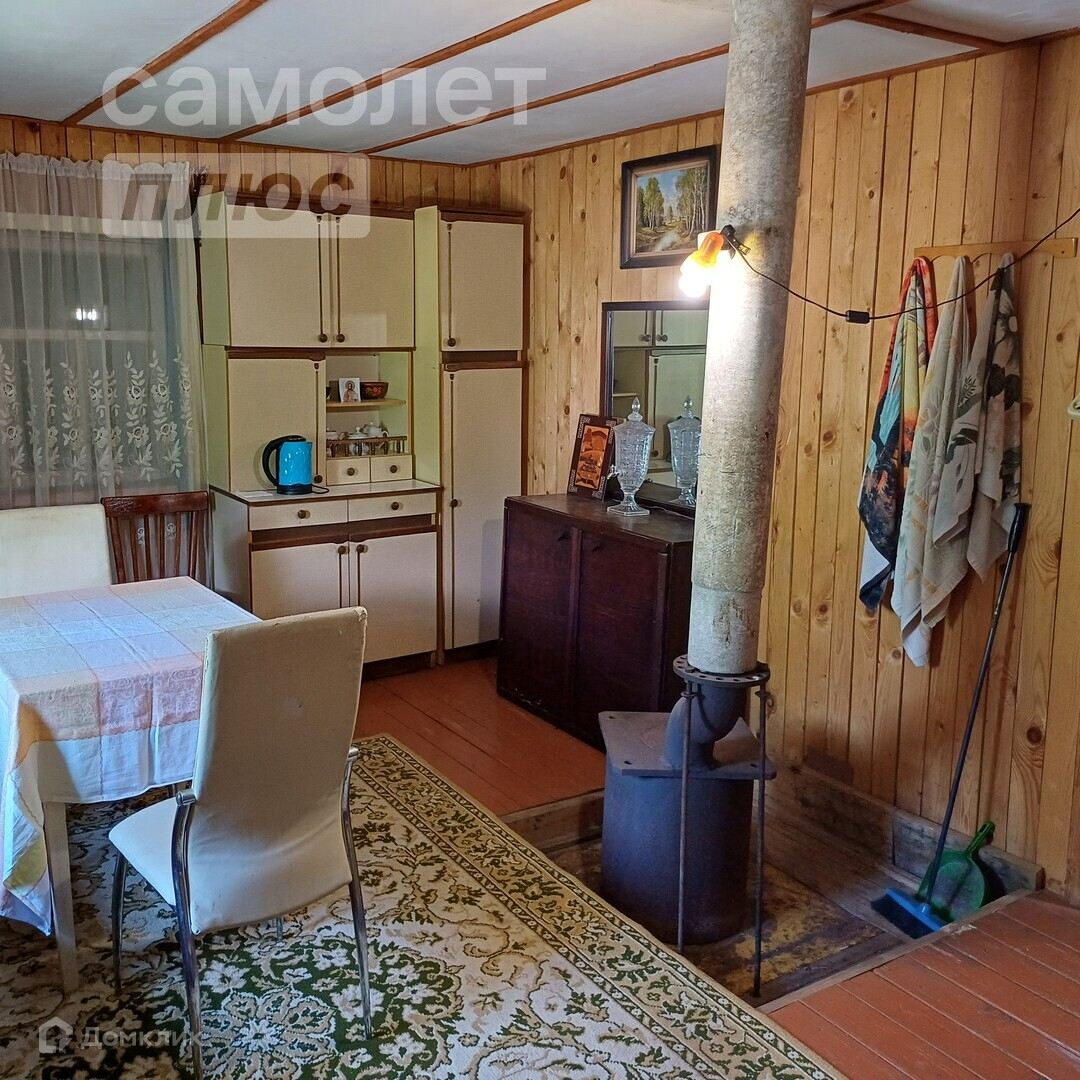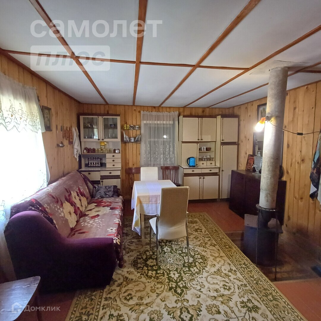 На участке есть дом. Площадь 55 кв.м. Стены выполнены из керамзитобетонного блока, мансардное помещение деревянное. Внутри все обшито вагонкой. На первом этаже располагается кухня и гостинная, в мансардном помещении просторная спальня. В дом заведено электричество. Есть печка-буржуйка. Под печкой залита бетонная площадка под камин.