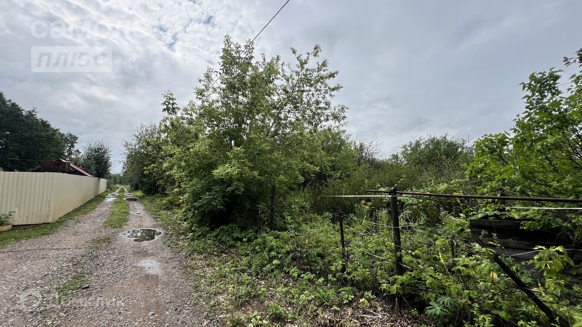 Имеется электричество, воду включают по расписанию (есть возможность пробурить собственную скважину).