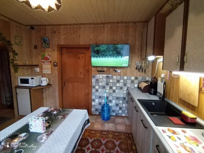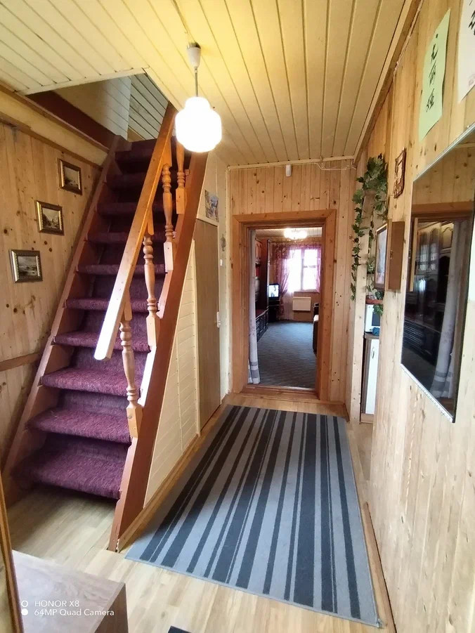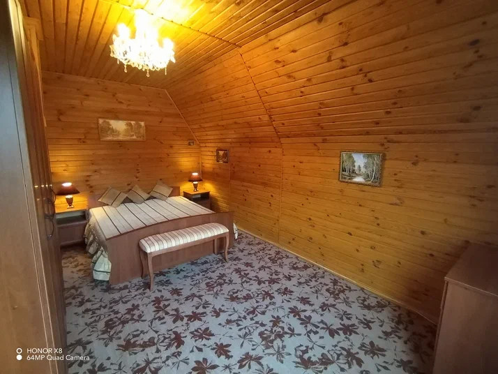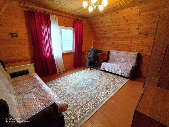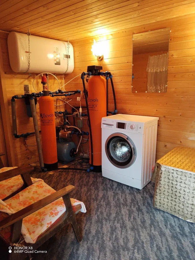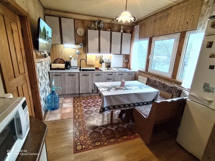 Первый этаж дома из бревна, второй этаж и кухня построены по каркасно-щитовой  технологии. Второй этаж можно закрыть, чтобы не отапливать в холодное время года. Дом вложений не требует, вся мебель и техника остаются новым владельцам. Электричество 15 кВт разведено по дому и участку. Установлена система водоснабжения с водоочисткой и автоматической подачей воды из колодца. Система безопасности с выводом сообщений на телефон, спутниковое телевидение Триколор.