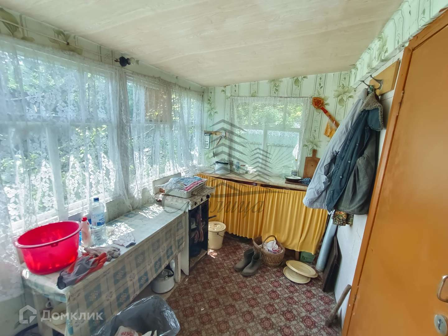 На участке есть закрытая беседка, баня, теплица, туалет, емкость для воды.