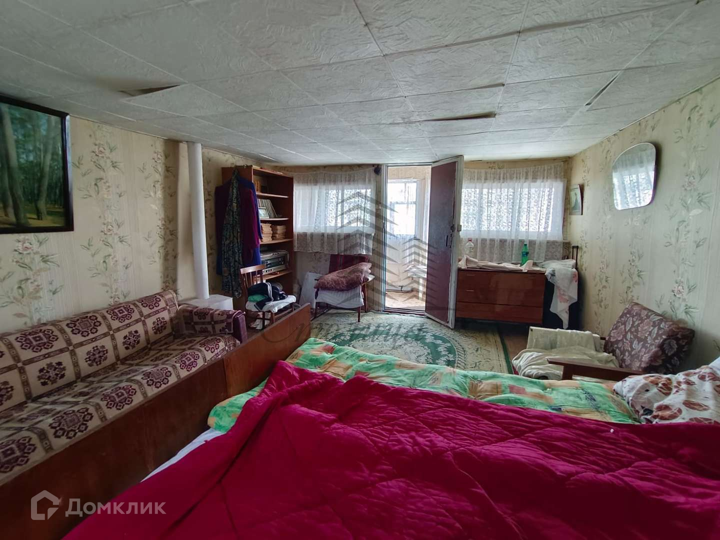Дом мансардного типа, первый этаж - просторная комната, прихожая, кухня с дровяной печкой, на мансарде 1 большая комната с верандой.