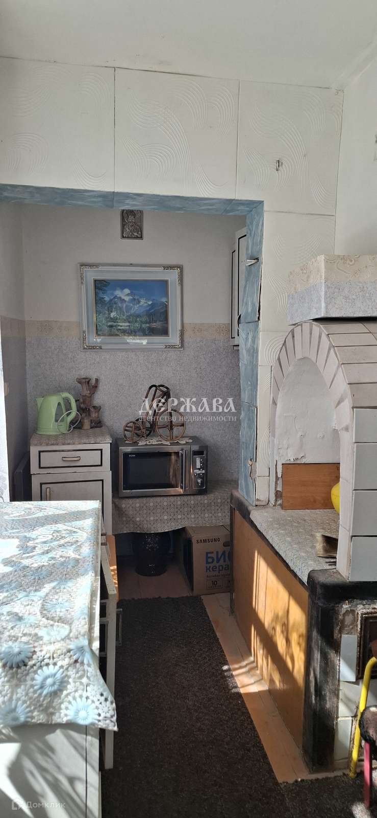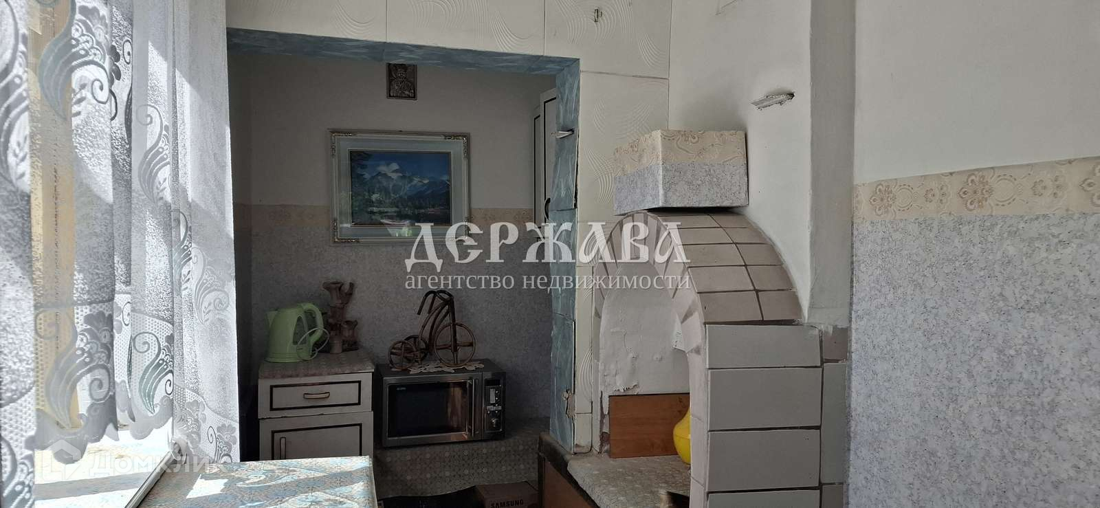 Дом кирпичный, оштукатурен. Планировка первый этаж: терраса, коридор, кухня и просторная комната. Мансарда: - спальная комната, две кладовые.