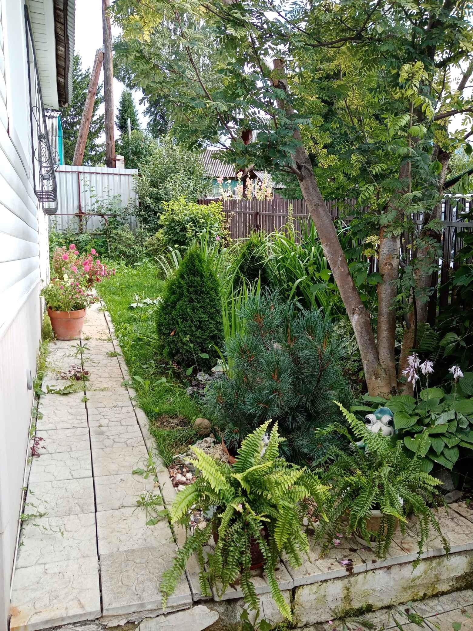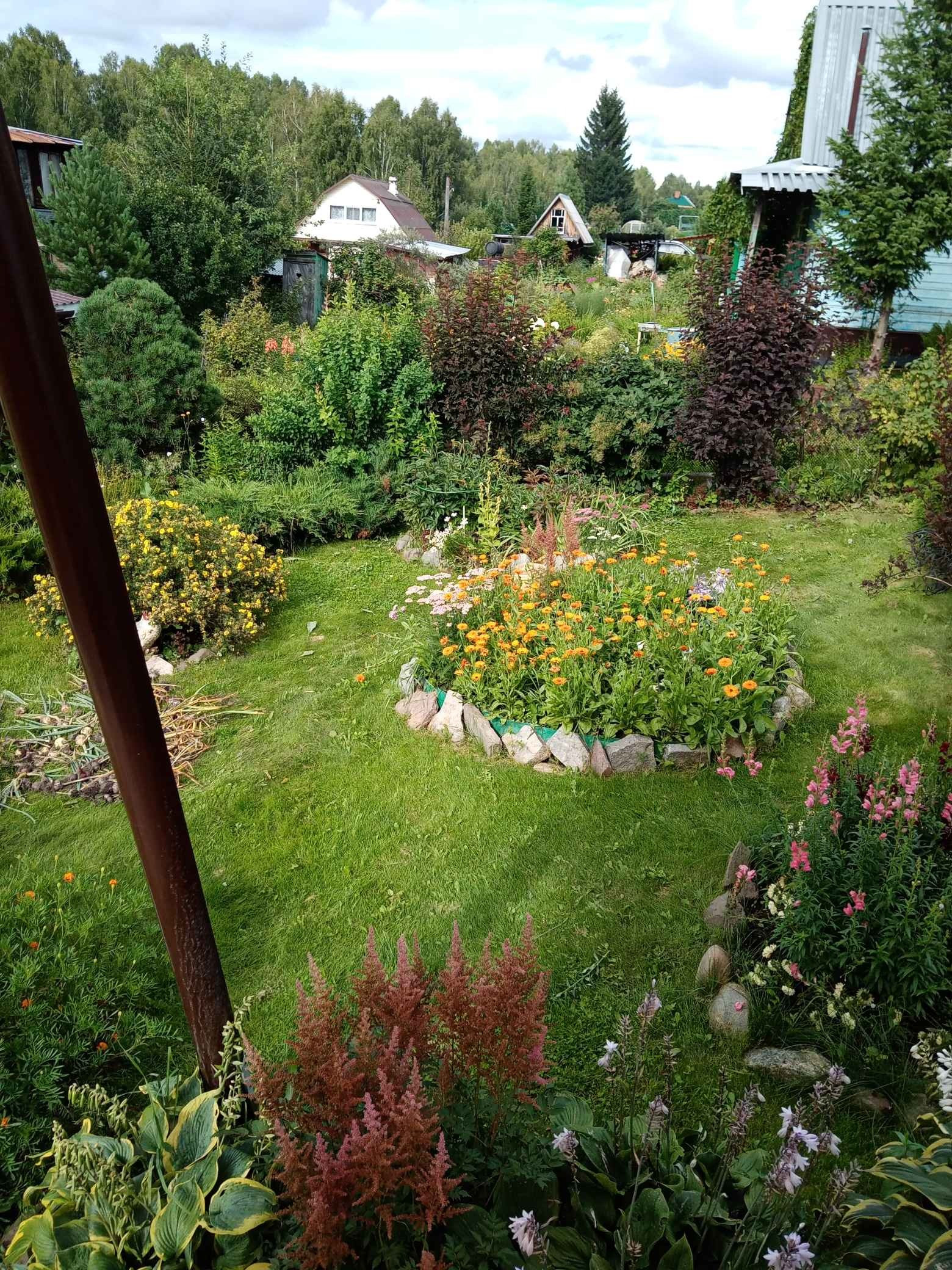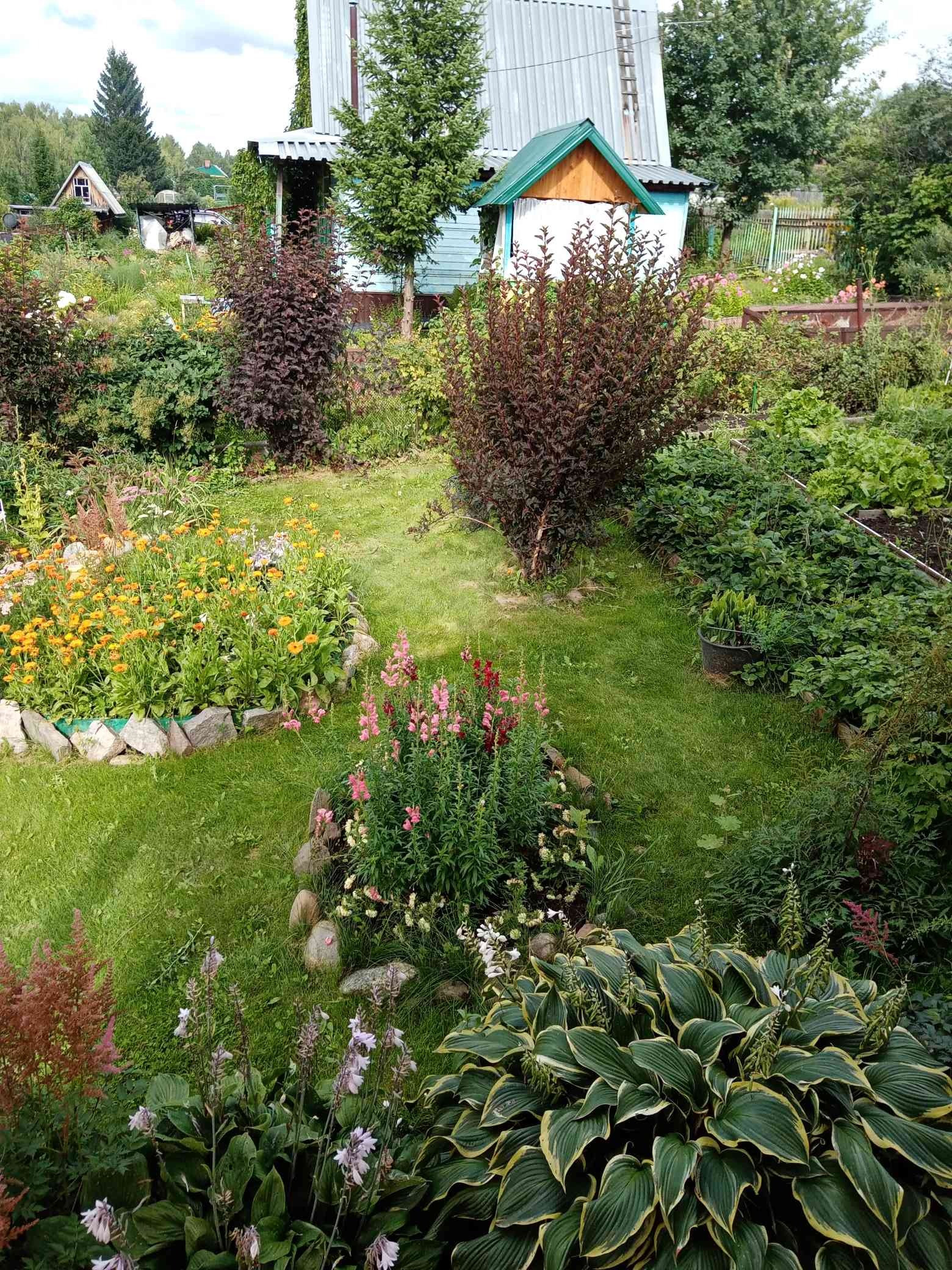 Участок разделен на зону отдыха и огорода. Имеются все насаждения: яблоня, смородина, жимолость, крыжовник, малина, ирга, а остальное- хвойники и цветы. Имеется теплица 3 х6 м