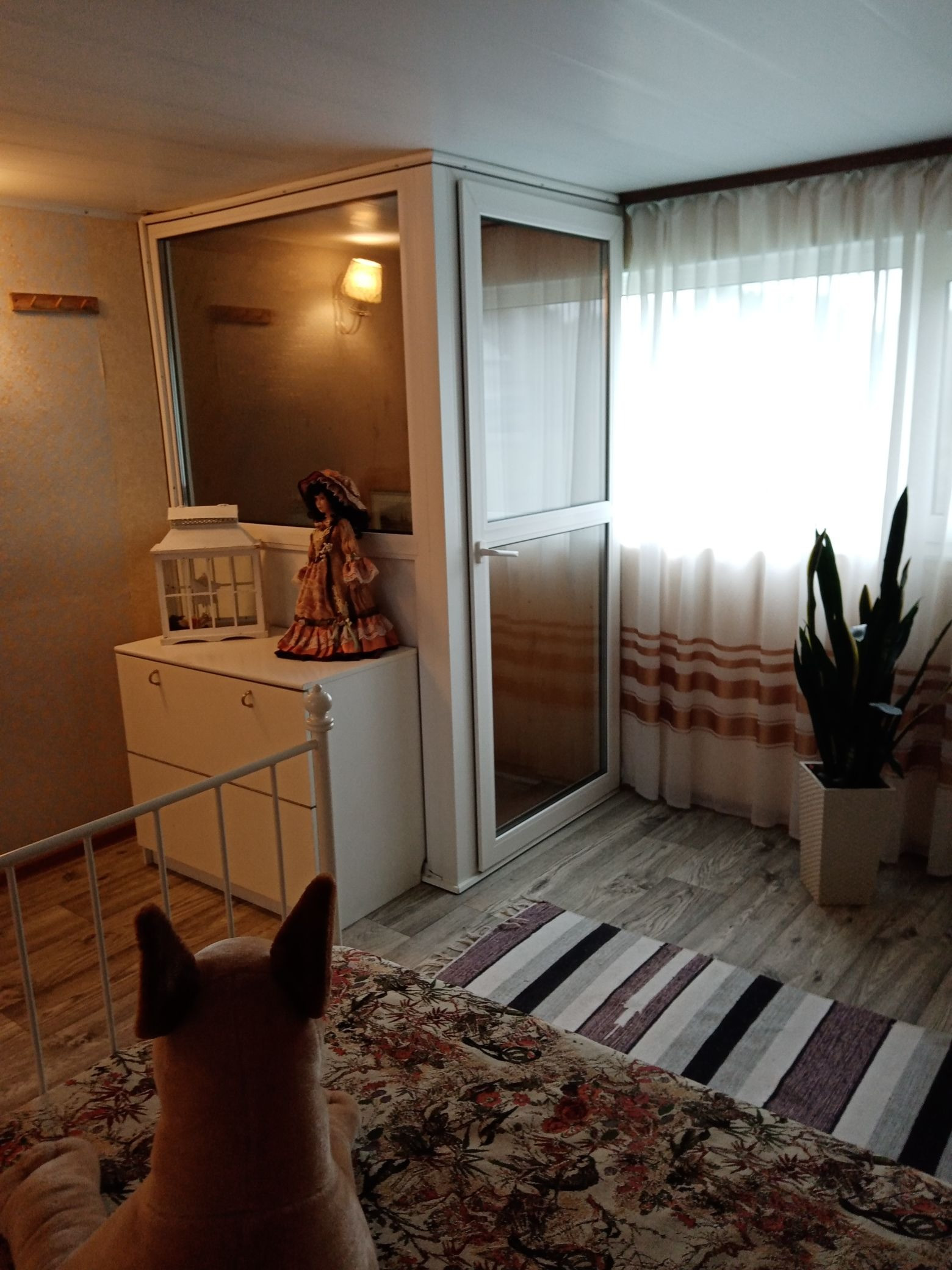 На 1 этаже: 2 комнаты, разделенные печью ( кухня и гостиная). По пологой лестнице вход в мансарду, где расположены спальня и лоджия со входами под крышу. Дом охраняется беспроводной GSМ сигнализацией "Сокол -- РRОF" с возможностью дистанционного включения с телефона нагрузки в 3 кВт. (обогреватель).Все полы в доме, бане, беседке и под бассейном из лиственницы. Скважина ( паспорт имеется) обеспечивает водой в межсезонье. Вода заведена в баню. При правильной эксплуатации не перемерзает и в -30 . В гараже, эксплуатируемом, как мастерская оборудована обогреваемая душевая кабина с раздевалкой. Горячая вода подаётся через накопительный бак, емкостью 50 литров с водопровода общего пользования. В уличный туалет заведено напряжение, позволяющее включать освещение от датчика движения и при желании включать обогреватель. В беседку площадью 15 м2 заведена вода и напряжение. Установлен железный мангал. Рядом с беседкой на площадке расположен тандыр. Бассейн 2 х3 метра, установлен под палатку на полы из лиственницы 50 мм., опирающиеся на фундамент. Классическая баня с предбанник, моющим отделением и парной. В бак с водой заведена дополнительная система циркуляции для топки летом. Баня эксплуатируется круглый год.