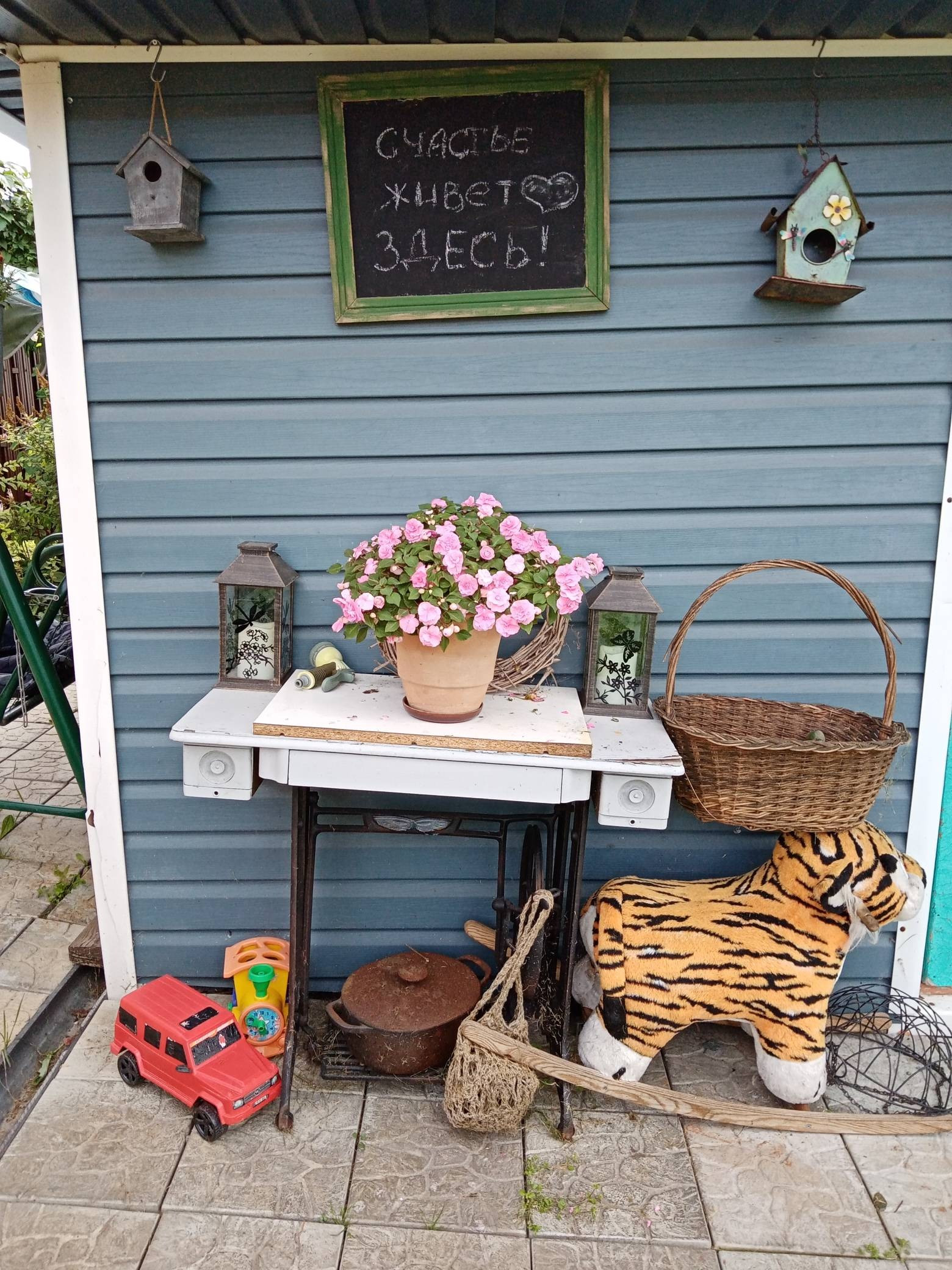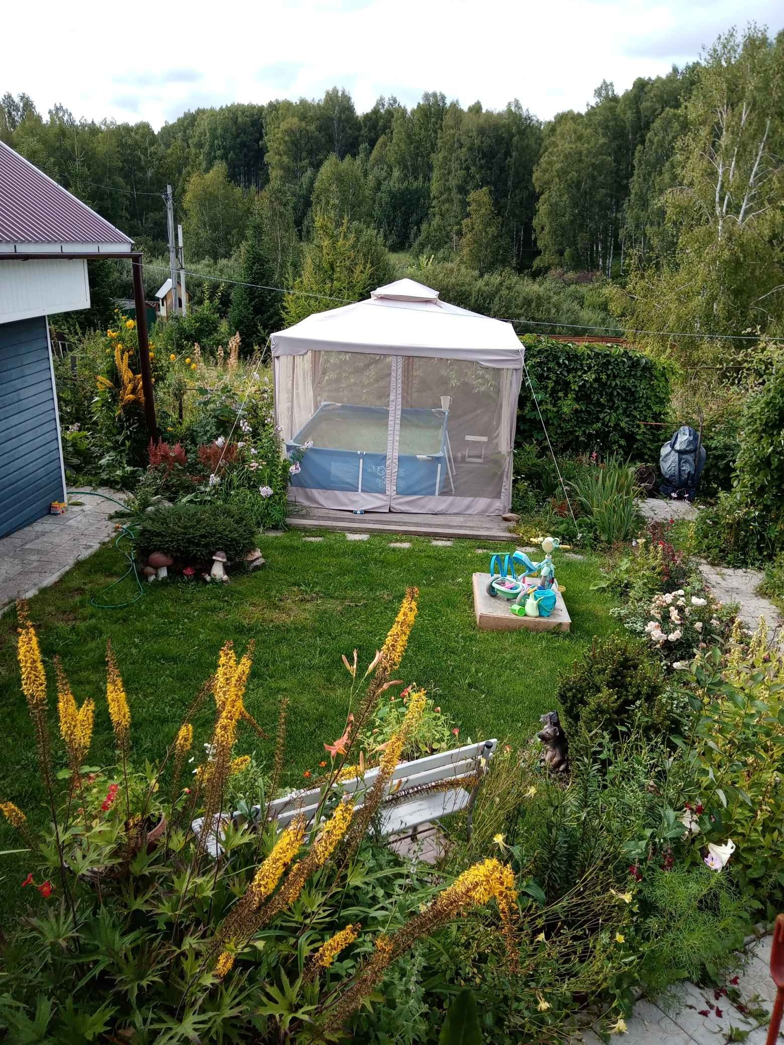 Остаётся все имущество: мебель, бытовая техника, садовый декор и садовый инструмент.