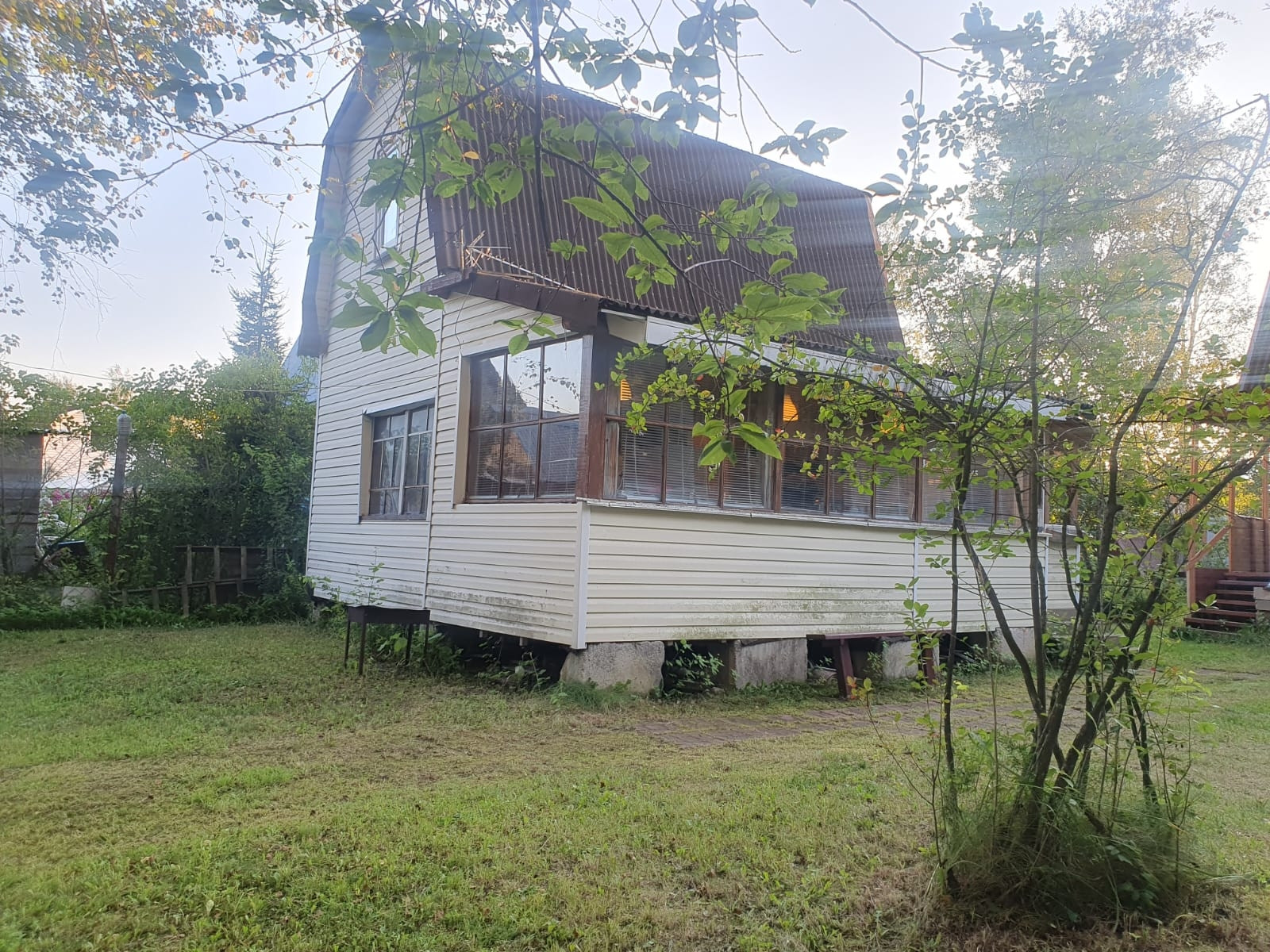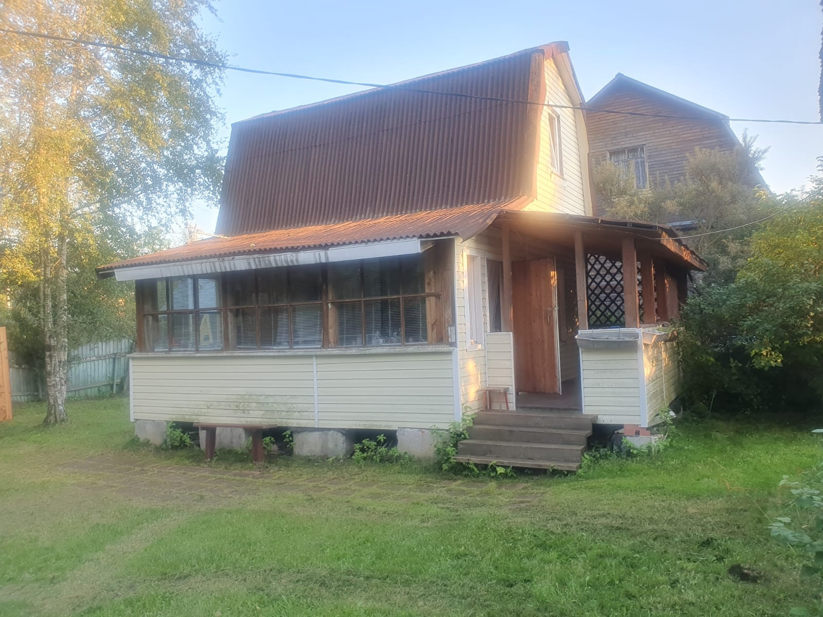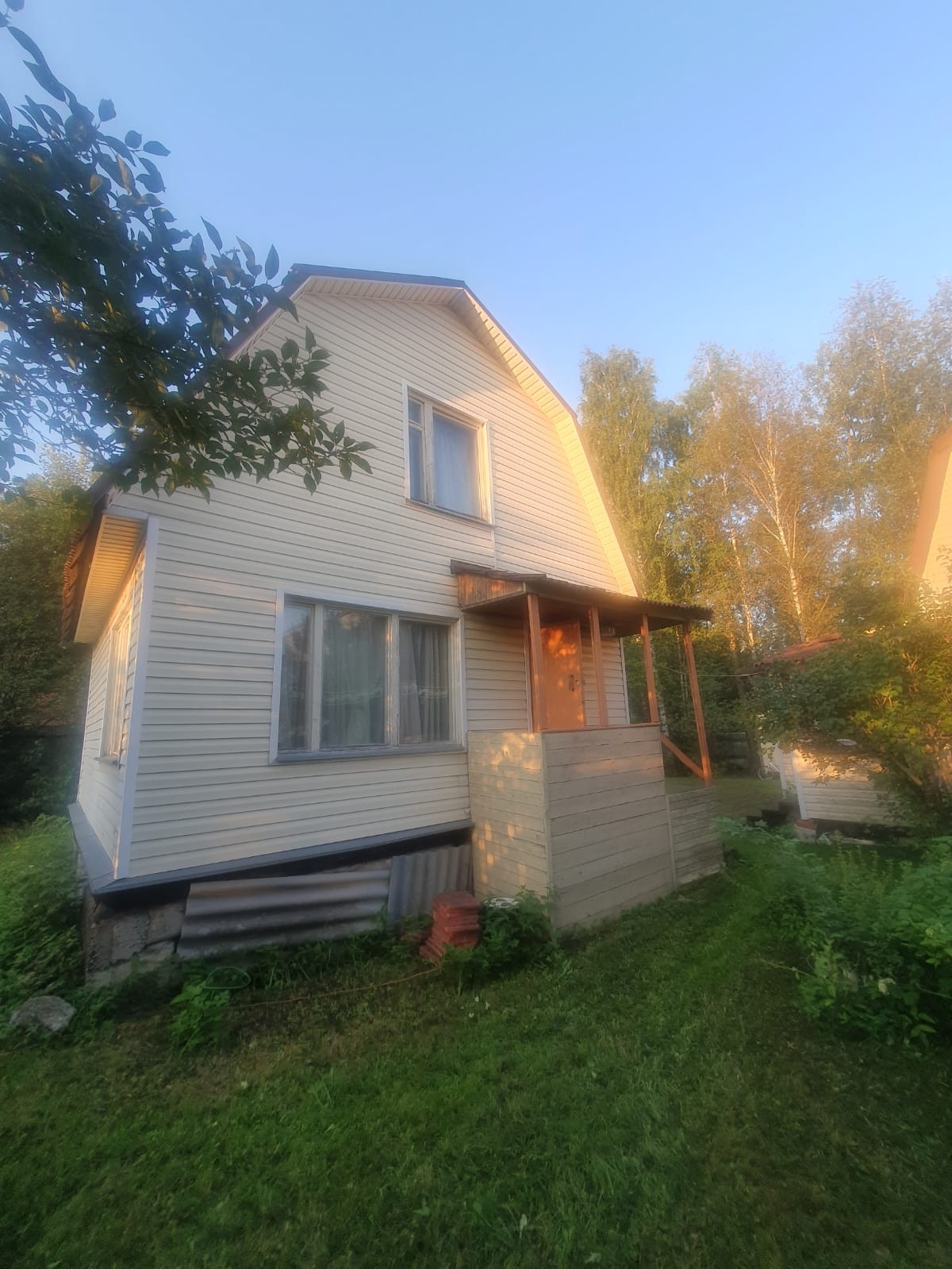 ухоженном , правильной формы участке,  расположены два дома , оба утеплены,  один дом на ленточном фундаменте,  в доме три комнаты,  холл,  окна деревянные,  во втором доме- открытая терраса,  кухня (вода заведена от летнего водопровода), две комнаты,  душевая кабина  с водонагревателем, окна пвх,  на участке действующая баня  с душевой кабиной,  также  на участке колодец с водой доя полива, плодово-ягодные кустарники,  участок находится в лесном массиве,  рядом с поселком Воровского  частный сектор,  до жд/ ст Храпуново  10' 15 минут пешком.Этот дом идеально подходит для тех, кто хочет отдыхать на природе, но при этом быть близко к городу. Здесь вы сможете насладиться тишиной и красотой природы, проводить время на свежем воздухе и наслаждаться спокойствием и уютом. снт Алешкинские сады