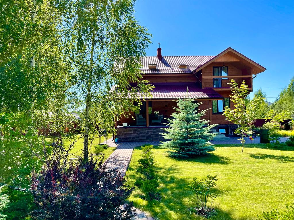 На участке 17 соток расположены  2 дома в деревне Леньково СНТ Алмаз. Основной дом 2-ух этажный из бруса с качественной отделкой деревом с мебелью, площадью 234 кв.м. с открытой большой верандой, имеется цокольный этаж. В доме 4 просторный спальни, кухня-гостиная, 2 сан.узла. Отопление - дизельный котел на 1.5 тыс.литров с разводкой (радиаторы) по всему дому. Вода горячая (бойлер), септик. Собран центральный дымоход под камин, сделана электропроводка. Гостевой дом 60 кв.м. с мебелью из бруса  состоит из 3-ех комнат, двухэтажный с печкой, полностью готов к проживанию. На участке крытая зона барбекю с каменным мангалом, хозблок, помещение сауна+смежное помещение душевой.