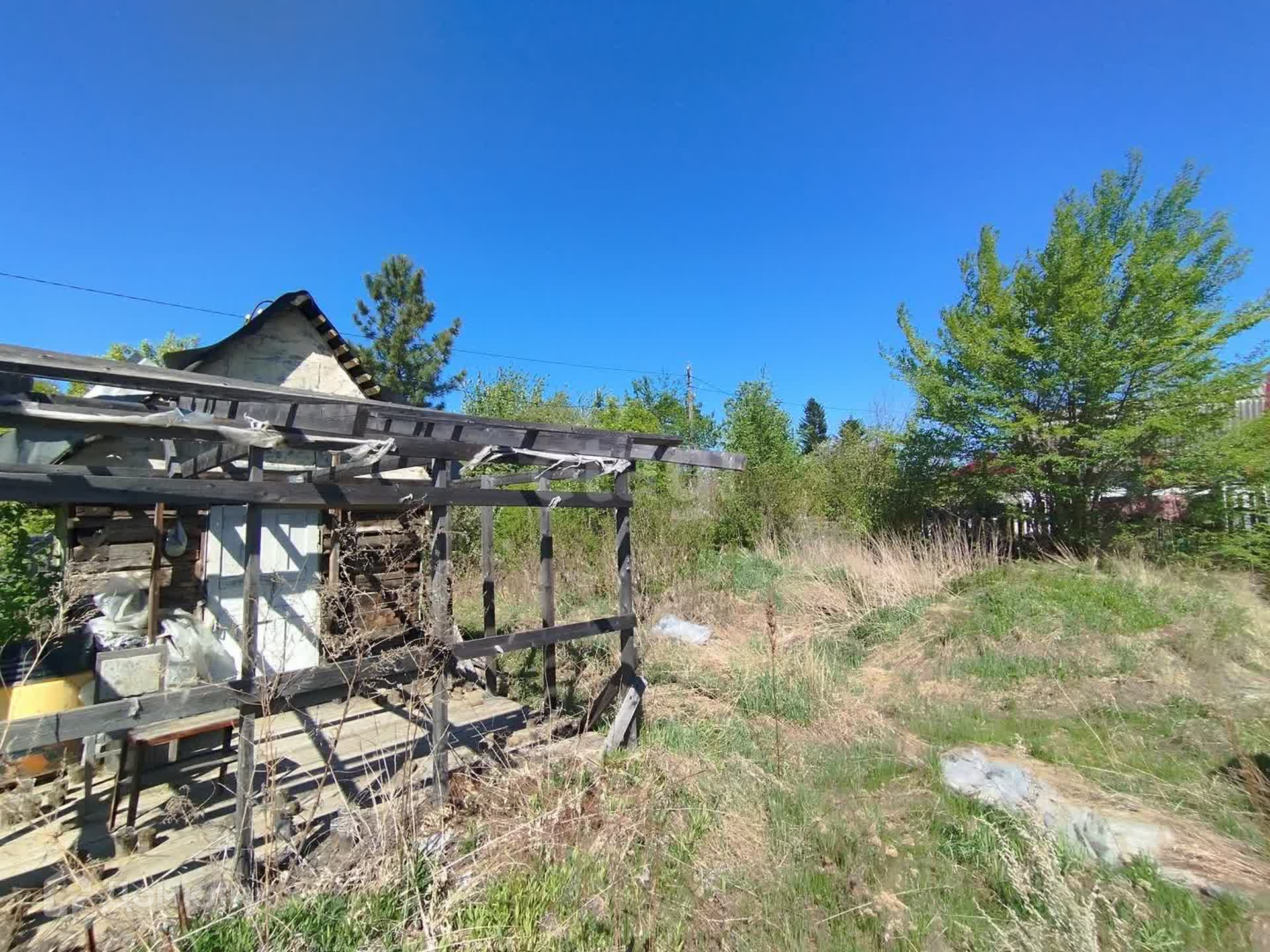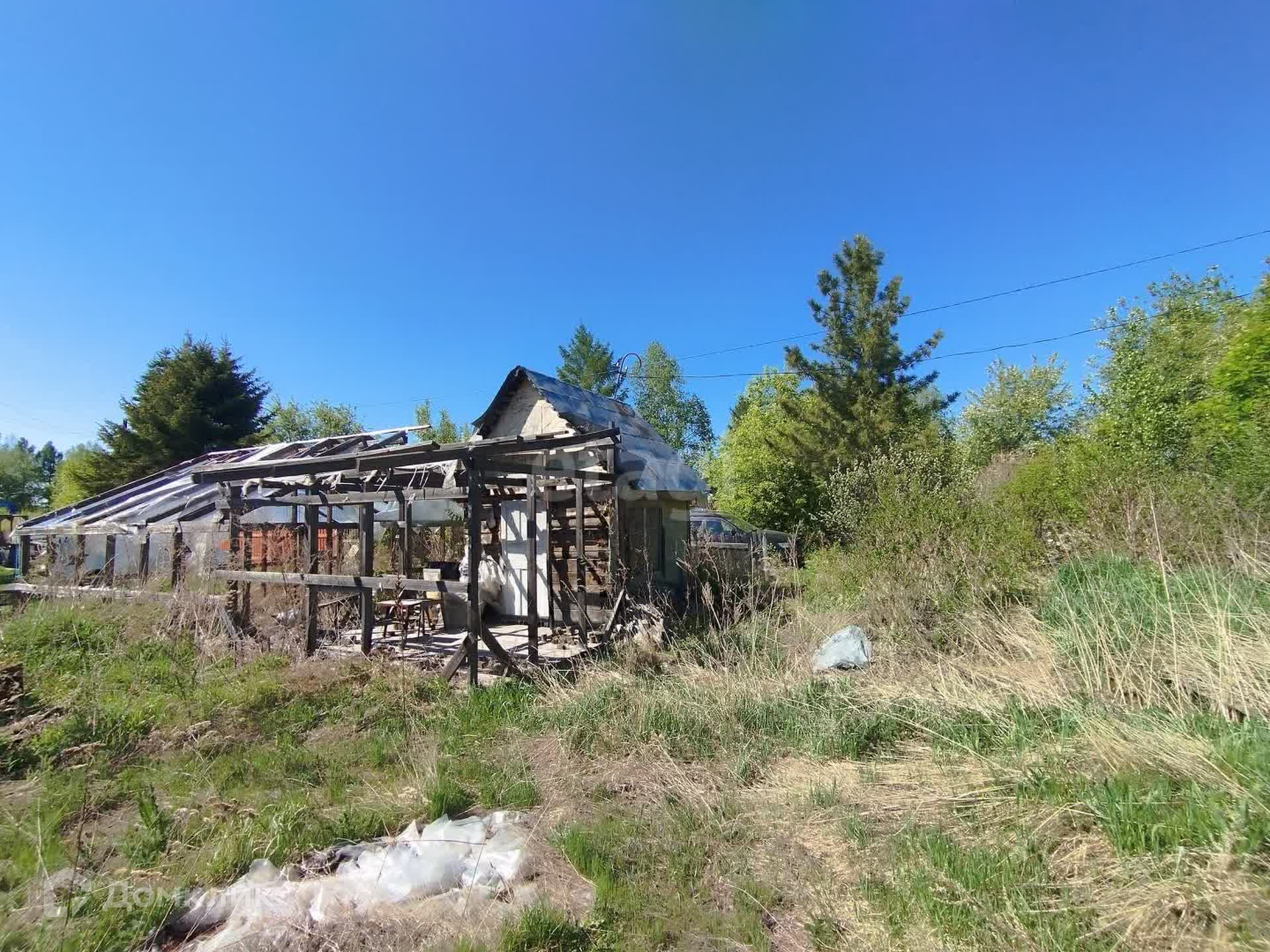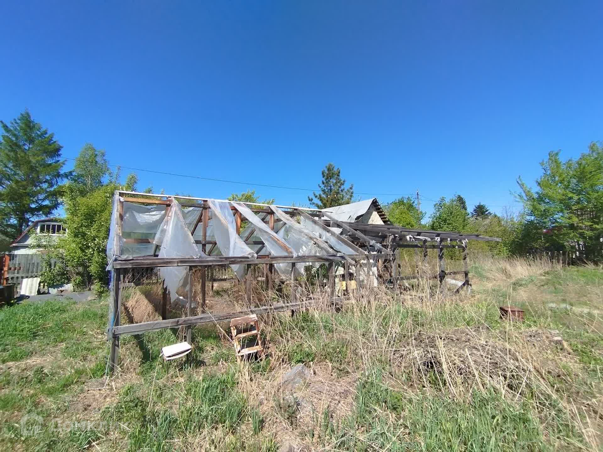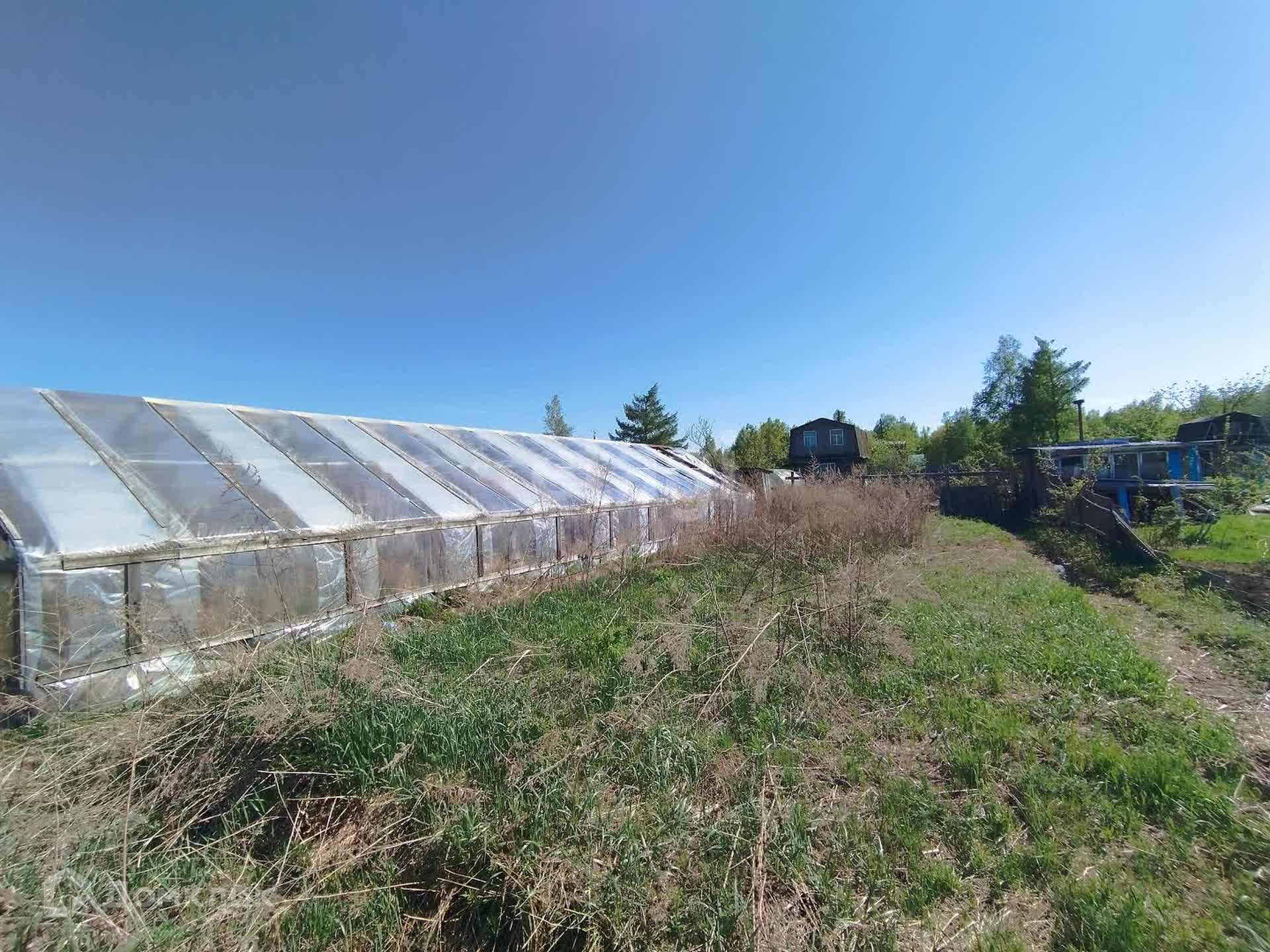 Участок был разработан, но в последние пару лет на нем ничего не делали... Есть хоз.постройки и две теплицы - одна покрыта пленкой, вторая - просто каркас. Если вы не планируете использовать их по прямому назначению, то вполне можно разобрать и тогда у вас будет достаточно приличное количество строительного материала. Домик совсем небольшой, но очень крепкий, с пристроенной летней верандой. В дом заведено электричество.