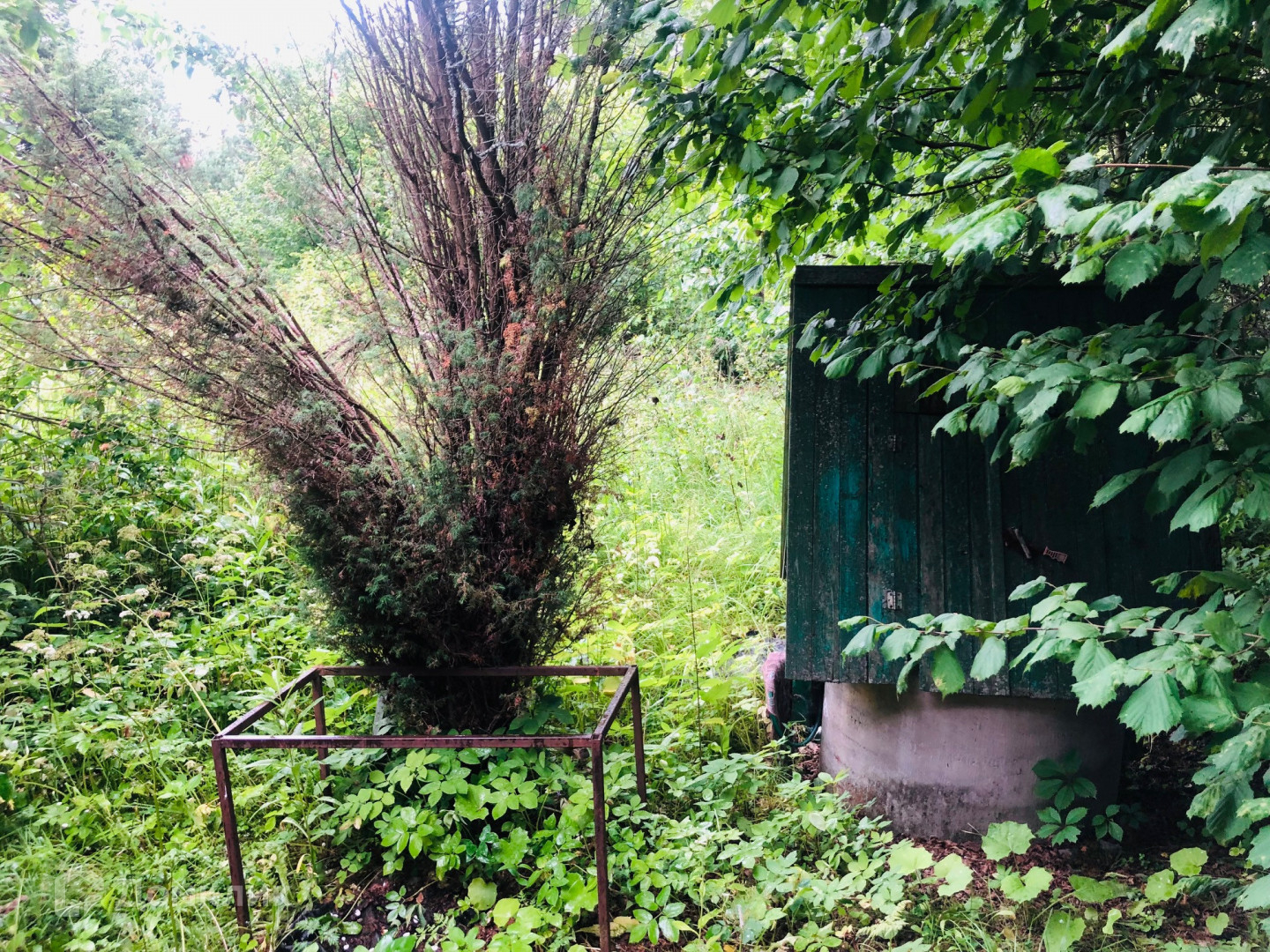 На территории участка есть колодец с питьевой водой, уличный туалет, бытовка для инструментов.
