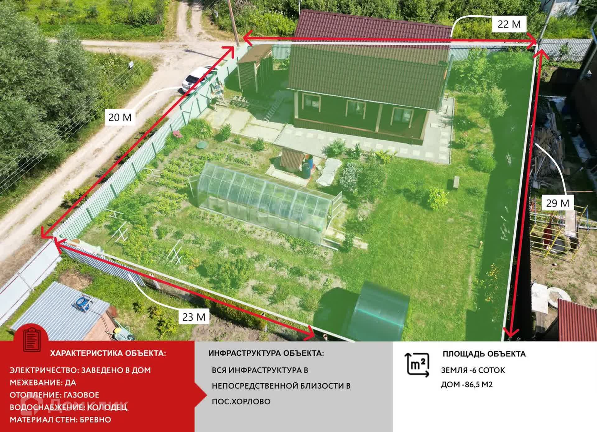 Ваши мечты теперь ближе! Воспользуйтесь УНИКАЛЬНОЙ субсидированной ставкой от компании "Этажи" под 11,5%-11,99% на ипотеку. Ищете дом для круглогодичного проживания? Вы нашли его! Вашему вниманию предлагается отличный дом 2018 года постройки, общей площадью 86,5 кв. м., на 6 сотках земли правильной формы. - материал дома: Дом бревенчатый. Утеплен классическим образом – основательно проконопачен (джутовое волокно). Межэтажное и чердачное перекрытия утеплены минеральной ватой. Внутренняя отделка дома – вагонка. Пол по всей площади утеплен напыляемым пенополиуретаном. - отопление: Дом отапливается с помощью газового котла. Радиаторы во всех помещениях и комнатах дома. В трубах используется незамерзающий теплоноситель. На котле 7 режимов (при температуре на улице -35 градусов достаточно включить 3-4 режим). - электричество 15 кВт: Розетки по всему дому, в том числе в ванной, туалете, коридорах. Несколько щитков для включения/отключения подачи питания (на первом и втором этажах). В уличном хозяйственном блоке также имеются розетки. Можно легко подключать удлинитель и работать садовыми инструментами. - водоснабжение: Колодец с погружным насосом (новый, срок службы менее года). Имеется ответвление для полива участка и набора воды в садовые емкости. Вода заведена в дом. Трубы проложены под землей, снабжены греющим кабелем. В доме установлен автоматический гидроаккумулятор на 80 л. Организована подача холодной и горячей воды по всему дому – на кухню, в туалеты и ванную комнату. Нагрев воды осуществляется при помощи водонагревателя. - канализация: В доме два туалета (на первом и втором этажах). Все трубы канализации утеплены и выведены в переливную систему (септик) с дренажным колодцем. По всему участку установлена дренажная система (имеются несколько входов/выходов). - дополнительно: Внешнее освещение по периметру дома. Автономная система видеонаблюдения. Забор по периметру участка – профлист и штакетник (установлен менее года назад). Усилитель сигнала и роутер. Много плодовых деревьев и кустарников, также на участке есть хозяйственный блок, беседка и теплица. Вся инфраструктура в непосредственной близости в пос. Хорлово. Прямая продажа, оперативный показ! Доп. описание: отопление: газовое, канализация: септик