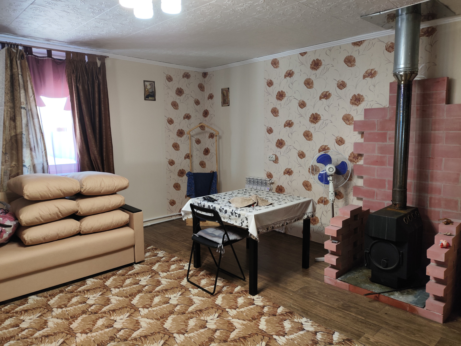 В доме Система отопления (котёл+ батареи) и печка;