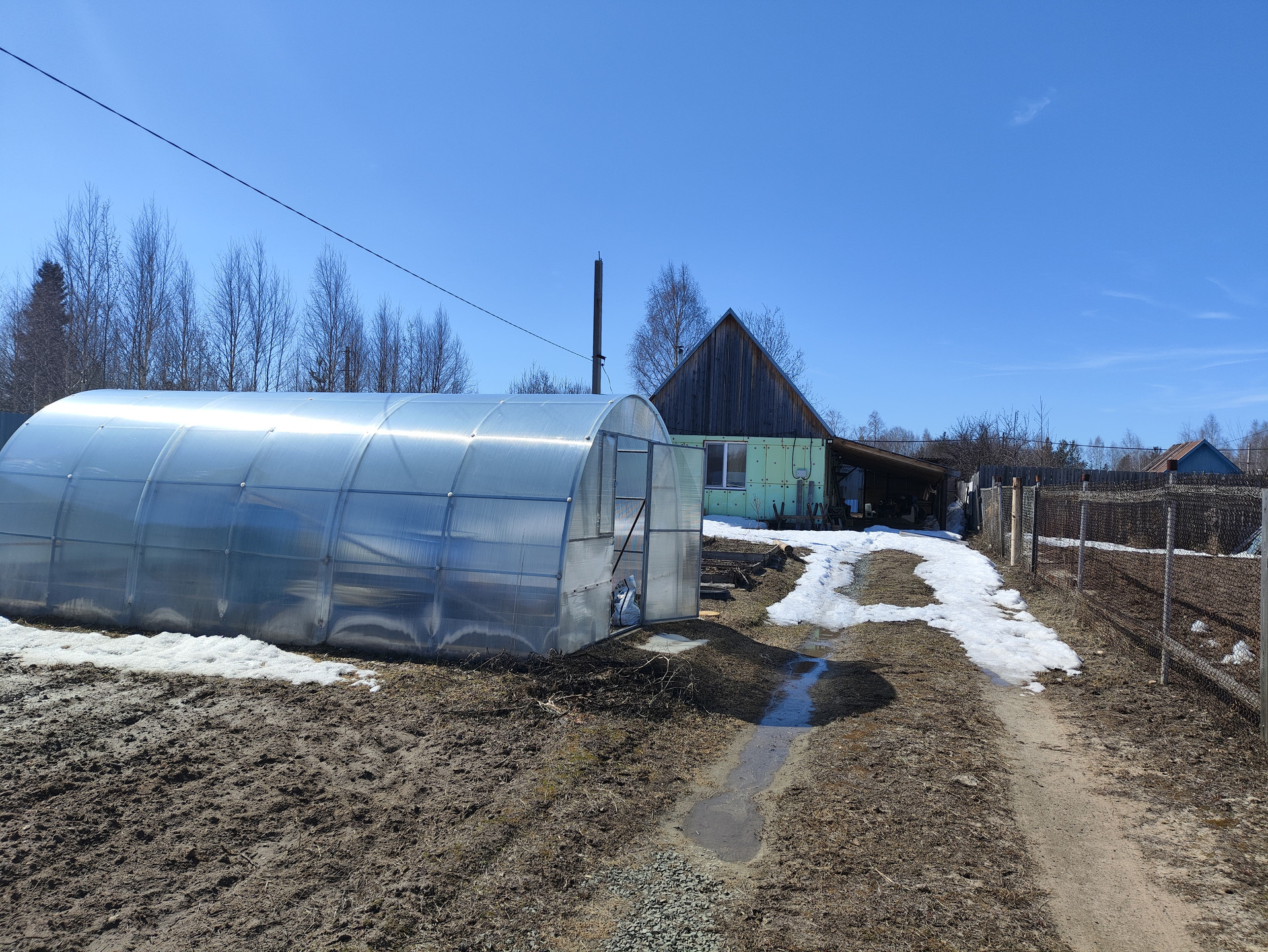 Участок разработан (посадка картофеля, грядки под зелень). Имеется теплица 3*4 с двойным каркасом, новая.