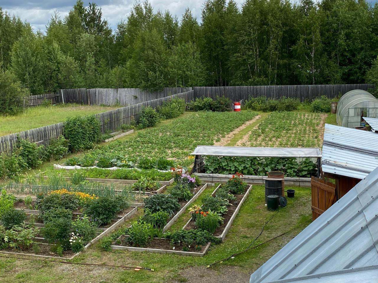 На участке имеются беседка, сарай, теплицы, парники.
